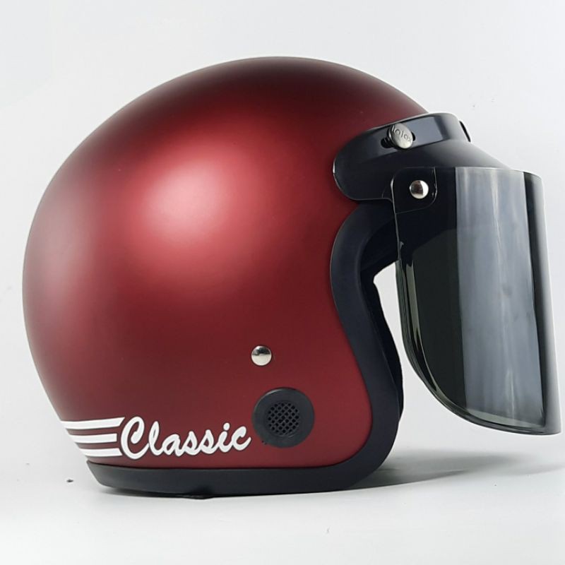 HELM BOGO TULISAN CLASSIC KACA CEMBUNG HITAM DEWASA + DUS