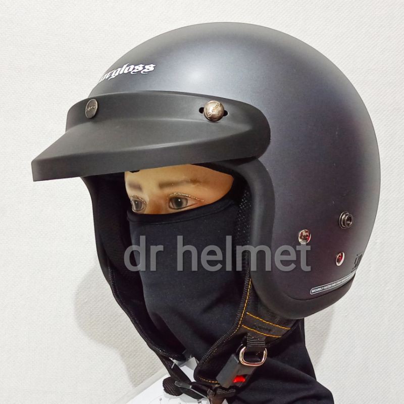 PROMO Helm Bogo Dewasa Model Retro Kaca Datar Full Leher Pria wanita Terlaris Flat Injak