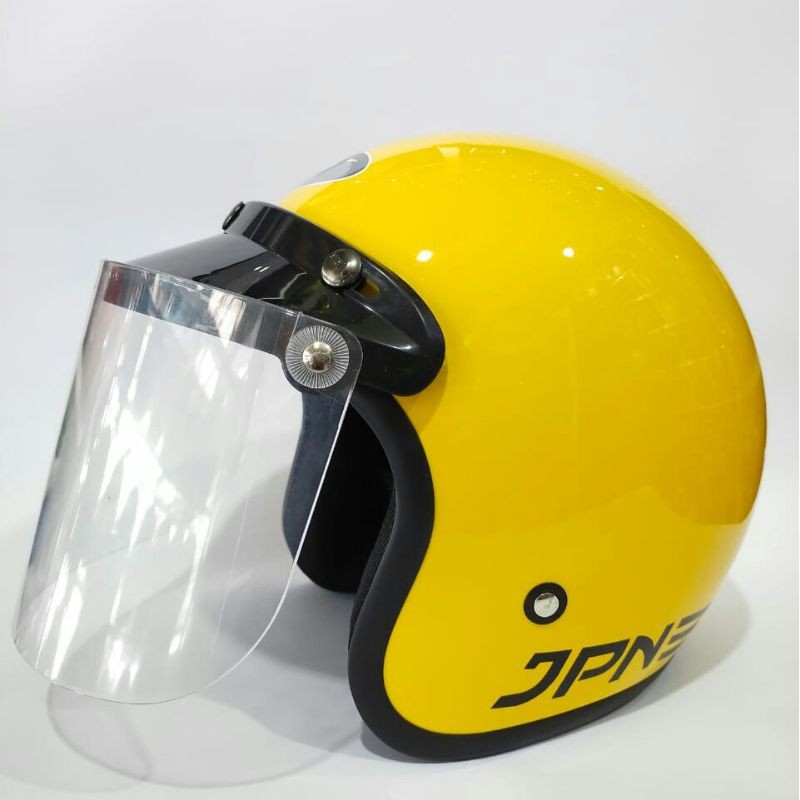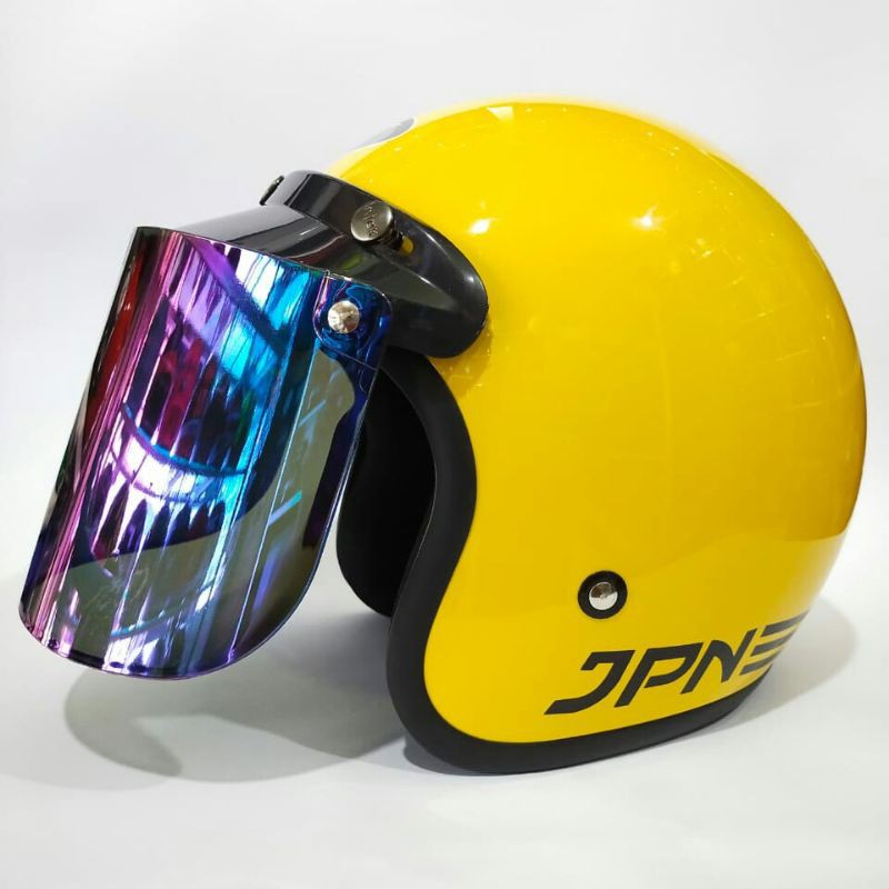HELM JPN BOGO RETRO ARC KUNING GLOSSY KACA DATAR FLAT VISOR