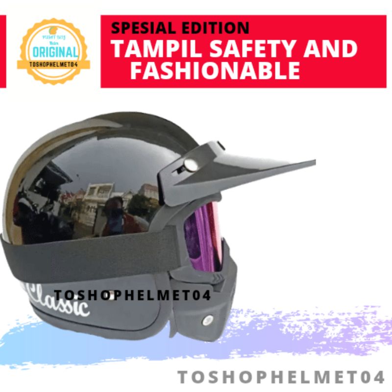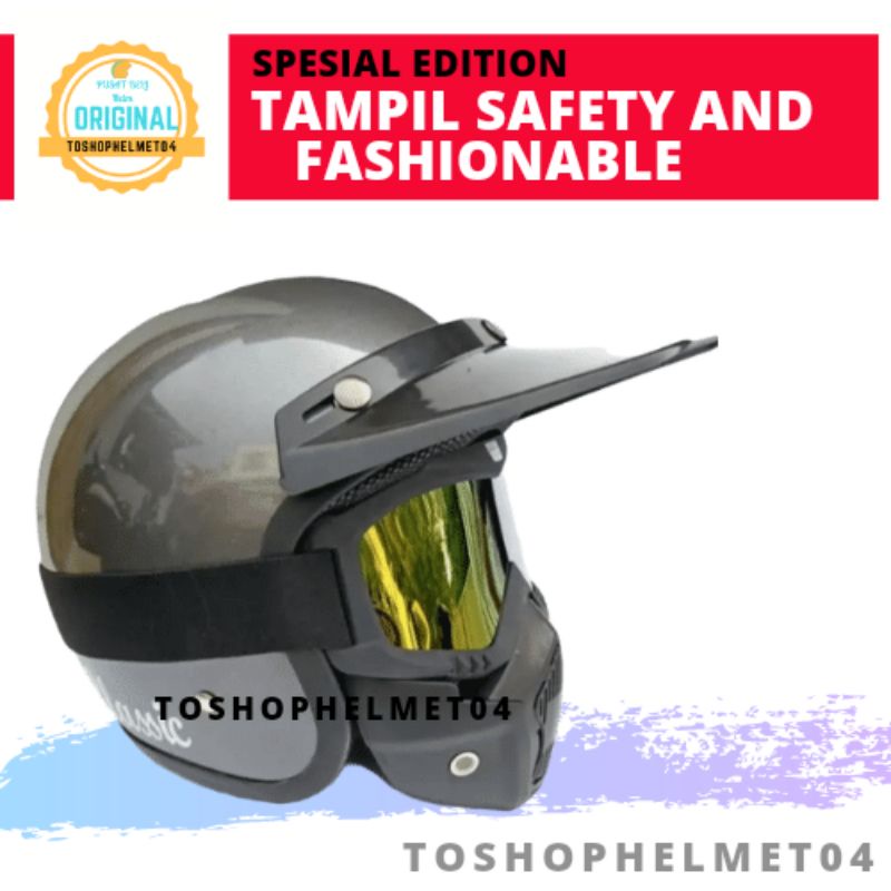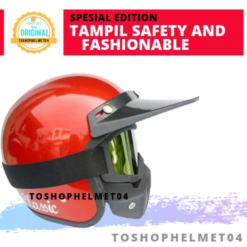 Kelebihan - Kelebihan membeli Helm Klx Motocross Trail Hlm Bogo Retro Kacamata Goggle Mask Hlem Bogo Unik Vespa Jadul Pria Keren di Toko ini