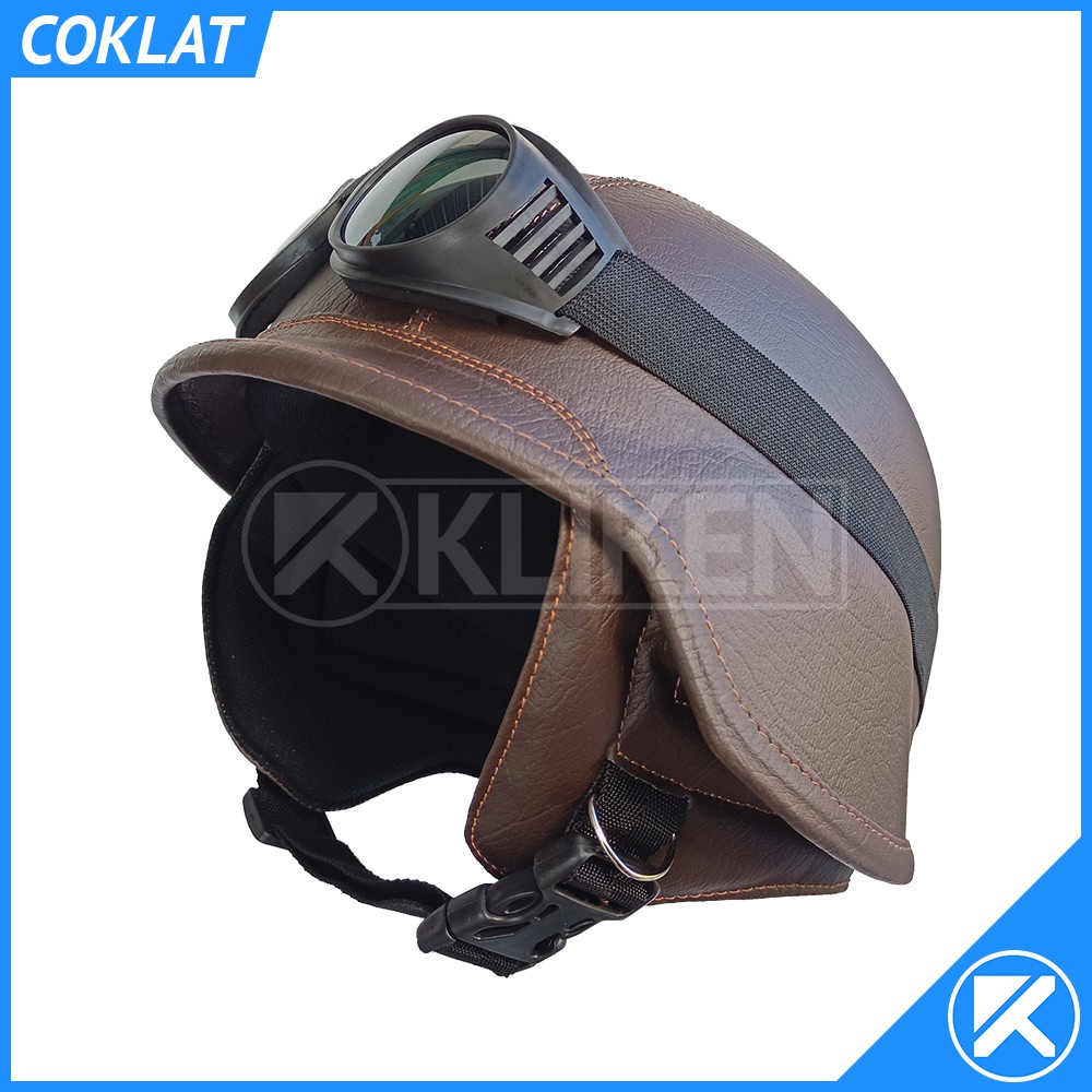 Helm Retro Kulit Model Densus Unik Dengan Kacamata
