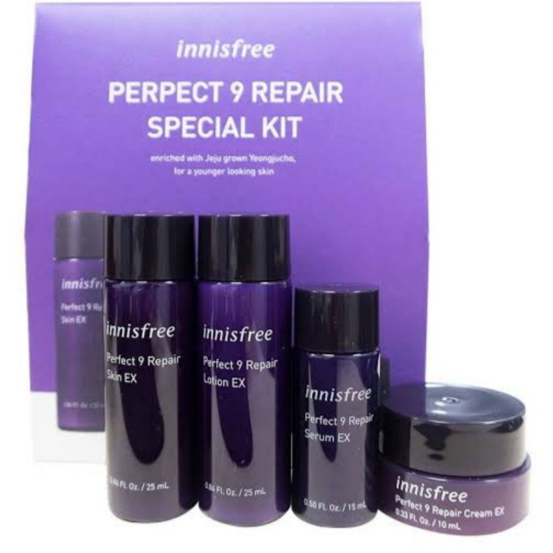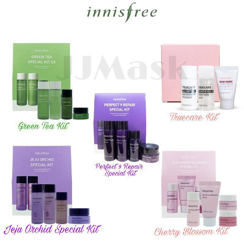 Innisfree Green Tea / Jeju Orchid / Cherry / Truecare/Perfect 9 Nine Repair SPECIAL KIT EX (4 items) Paket perawatan wajah atasi permasalahan muka, dari kulit kering, berminyak, sensitif maupun kombinasi, melembabkan mencerahkan hingga anti aging