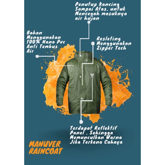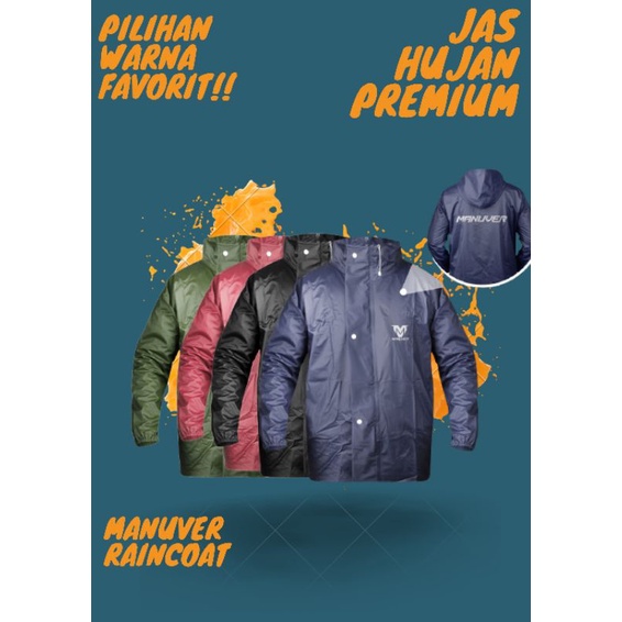 Jas Hujan Pria Wanita Setelan Mantel Baju Hujan Anti Rembes Bahan Tebal Lentur Raincoat Manuver