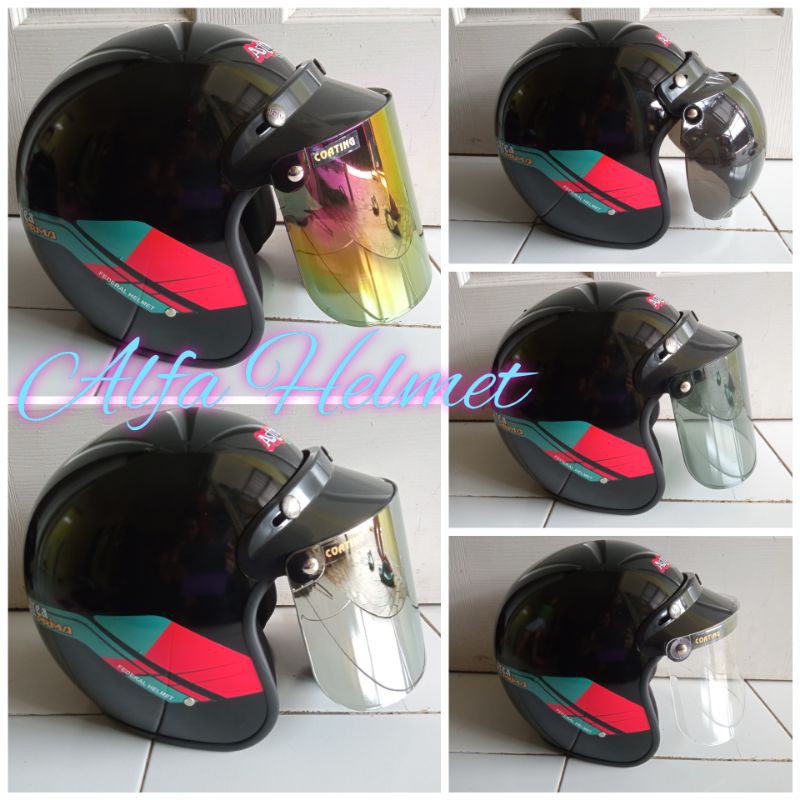 Helm Bogo Dewasa Polos Classic Garis Terlaris Kaca Bubble