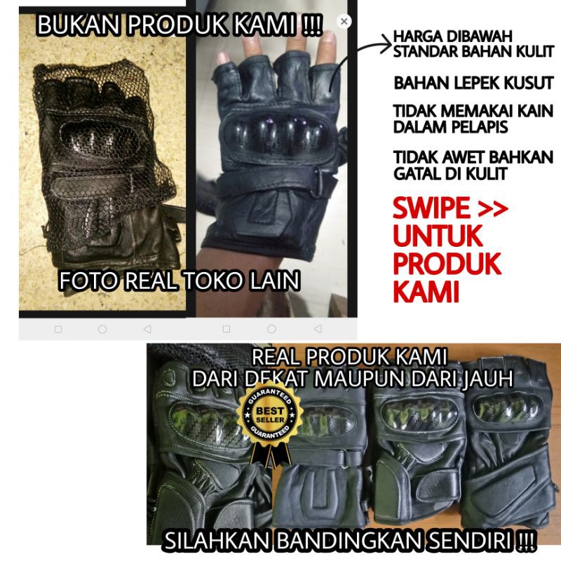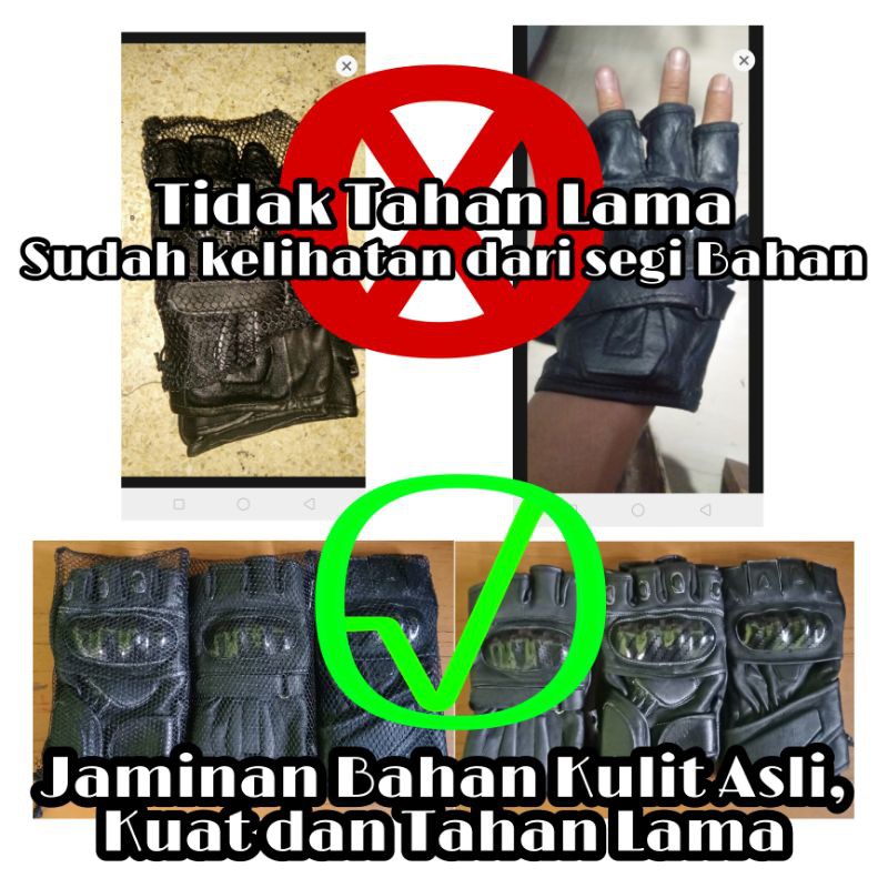 Kekurangan - Kekurangan membeli PROMO !!! Sarung Tangan Motor turing touring Pendek Half Finger Original bahan kulit cowok cewek di Toko ini