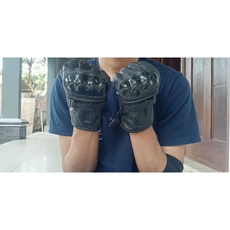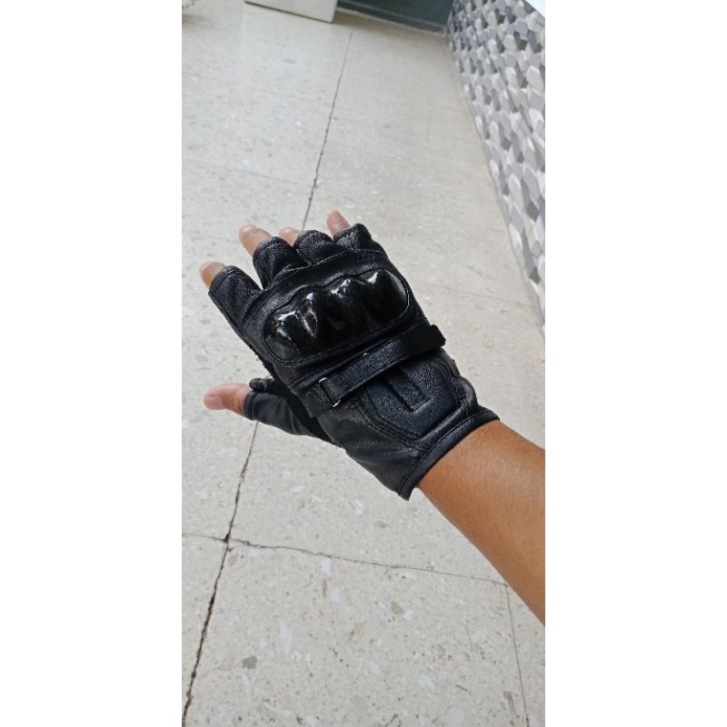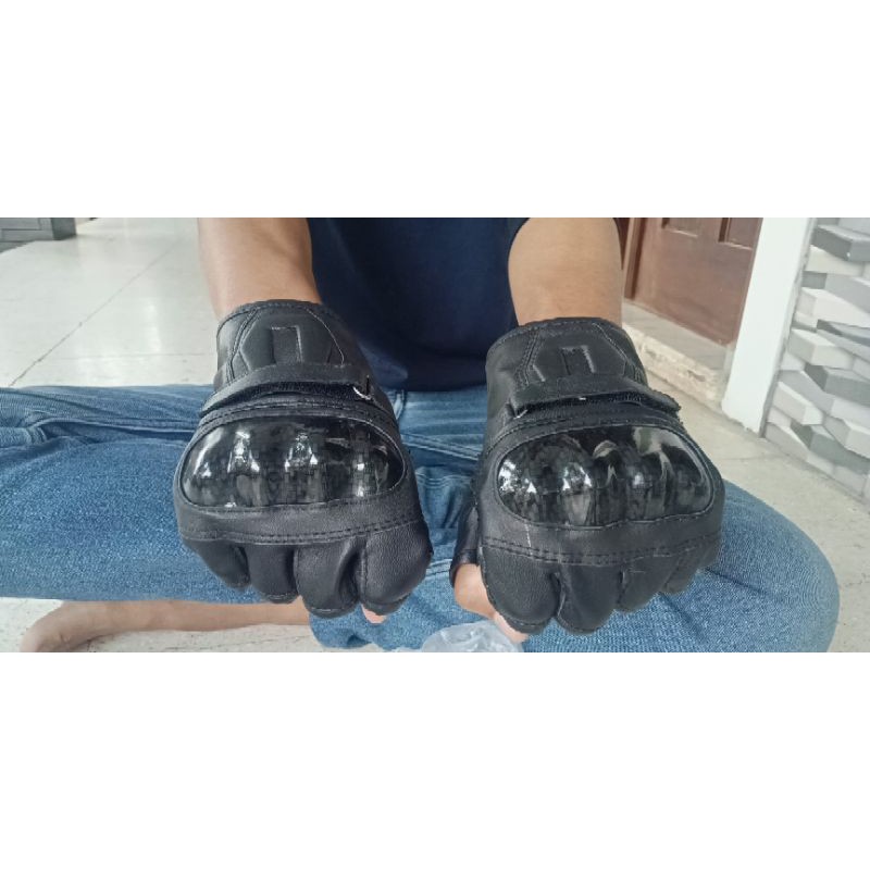 SARUNG TANGAN GLOVES MOTOR SETENGAH JARI HALF FINGER GLOVE RIDING TOURING HITAM GROSIR MURAH