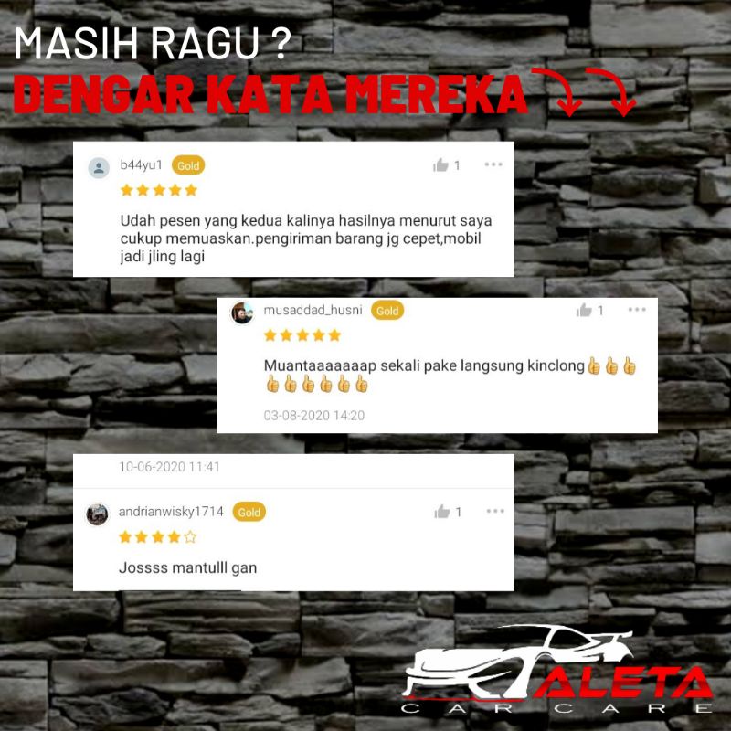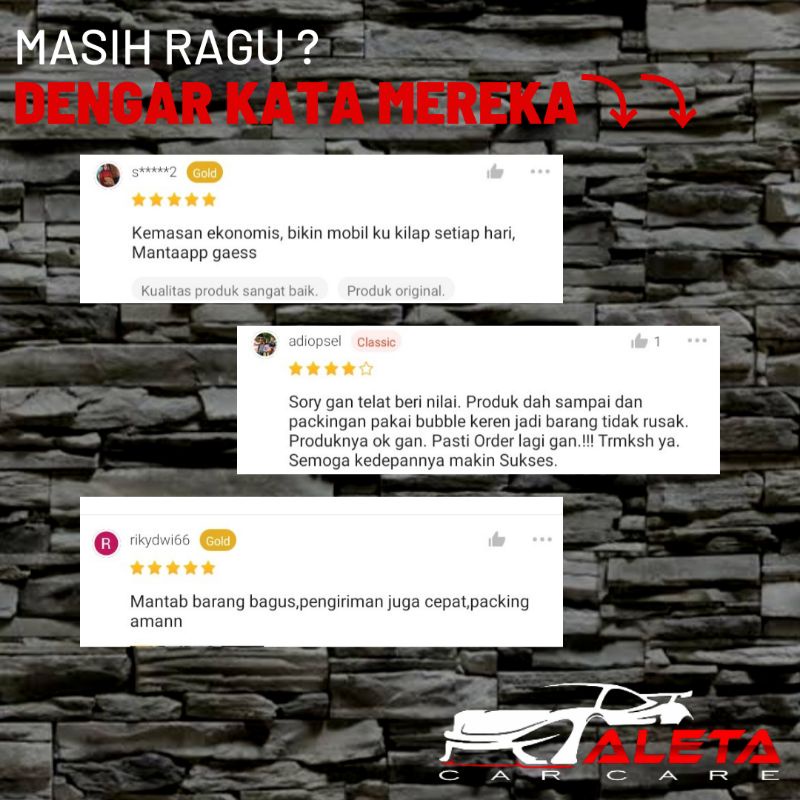 Rifan Juga punya 4 Produk lain terkait Produk Wax Poles Pengkilap Motor / Mobil - Obat Pembersih / Penghilang Jamur Kaca Dan Body - Sealant Guard + Waterspot Remover yang perlu Anda lirik karena menarik, Produk itu adalah....