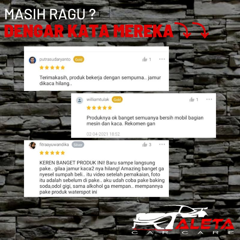 Produk Pembersih Jamur Kaca Dan Body Mobil - Obat Penghilang Jamur - Waterspot Remover Paket ini harganya adalah Rp. 29.900,00 dan saat ini sedang Diskon 40%, Produk ini sendiri saat saya tulis Artikel ini sudah dilihat sebanyak 224 kali dan sudah disukai sebanyak 354 kali.
