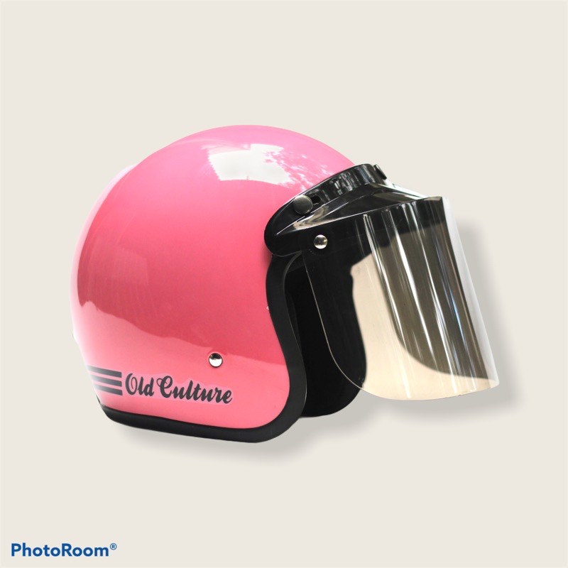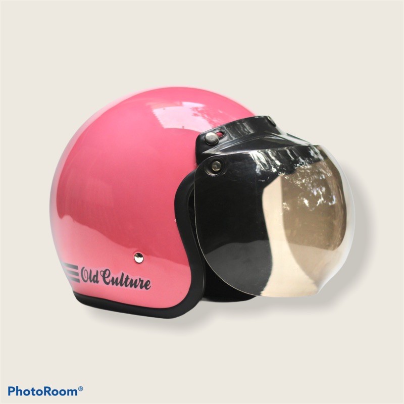 Helm Bogo Retro Kulit warna Pink, Helm Bogo warna pink hitam, pink fanta
