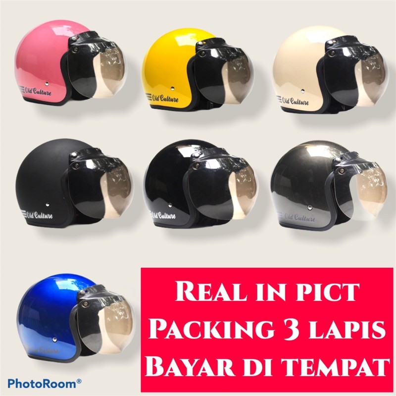 (BAYAR DI TEMPAT)HELM BOGO DEWASA KACA DATAR DAN CEMBUNG