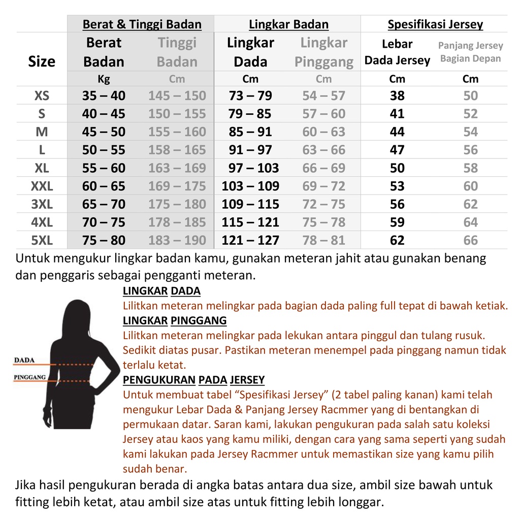 Produk ini memiliki 9 Variasi Ukuran yaitu : XS,S,M,L,XL,XXL,3XL,4XL,5XL,
