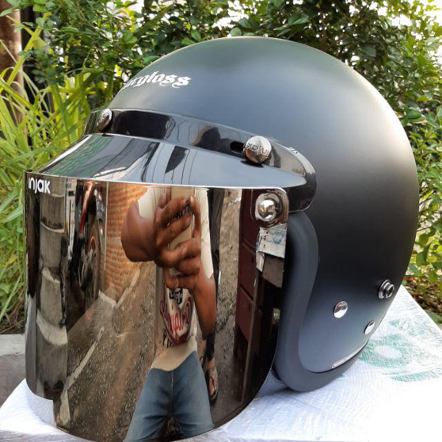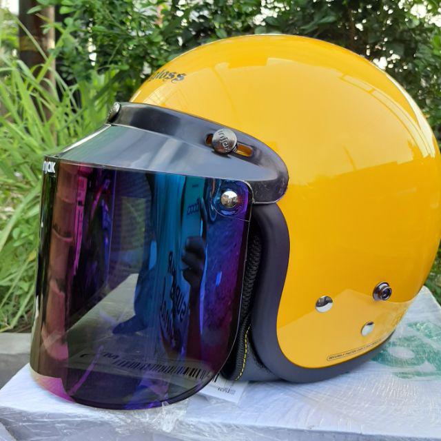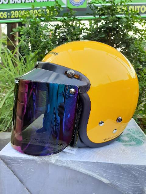 Helm bogo jpn retro arc kuning lemon kaca datar flat visor