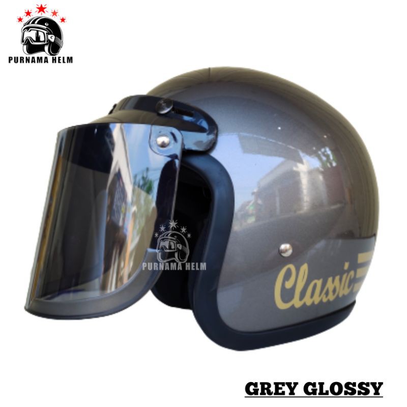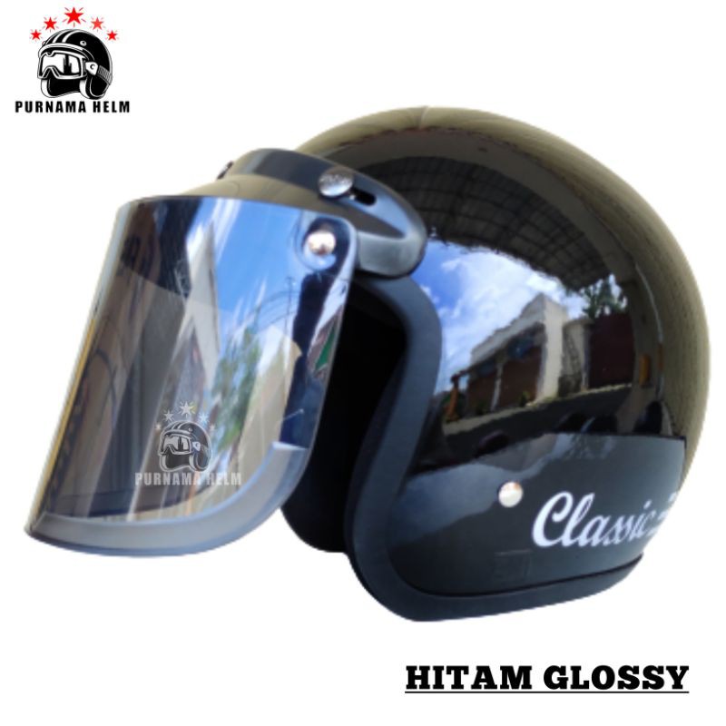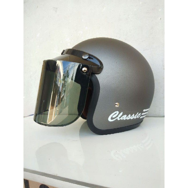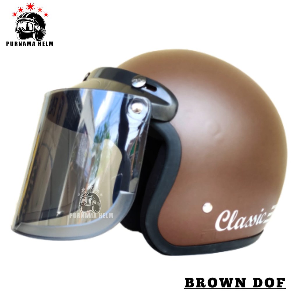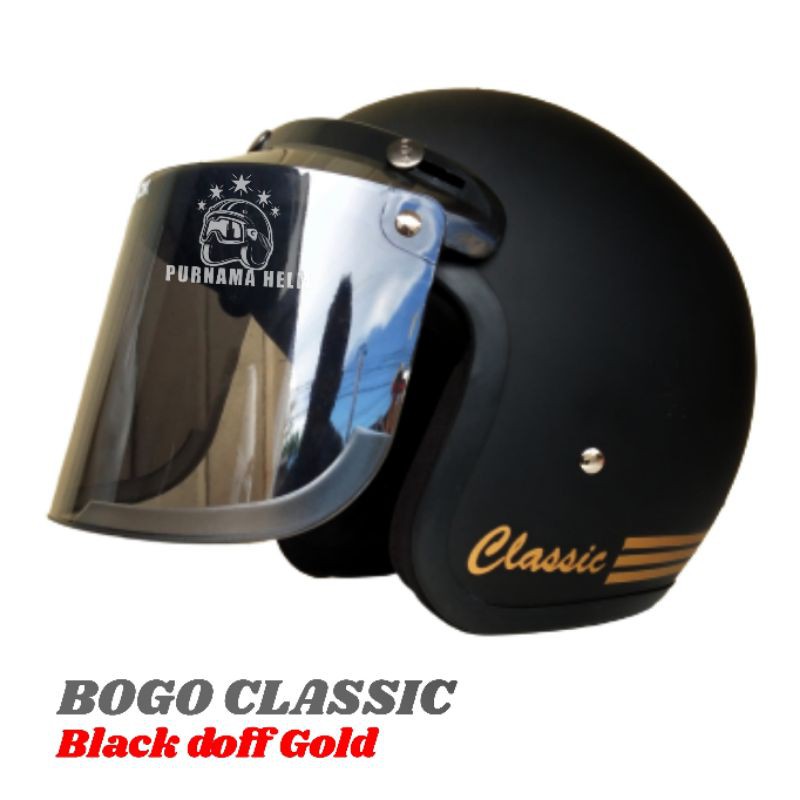 HELM BOGO DEWASA CLASSIK HELM BOGO COWOK CEWEK DEWASA SNI KACA CEMBUNG/ DATAR