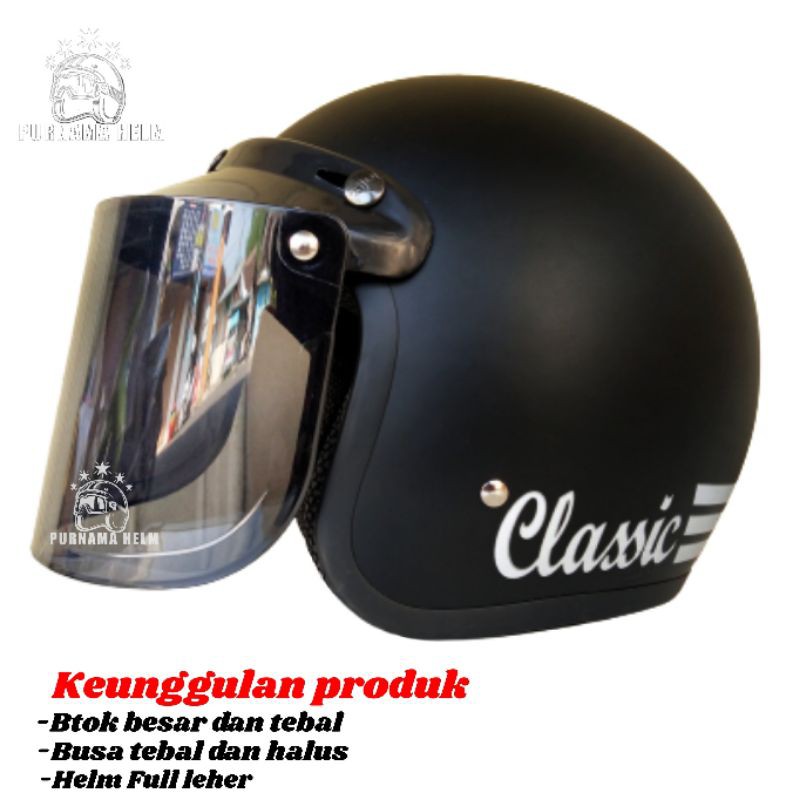 Kelebihan - Kelebihan membeli HELM BOGO DEWASA CLASSIK HELM BOGO COWOK CEWEK DEWASA SNI KACA CEMBUNG/ DATAR di Toko ini