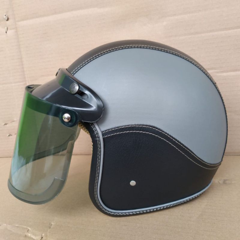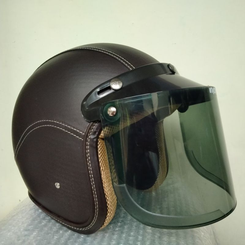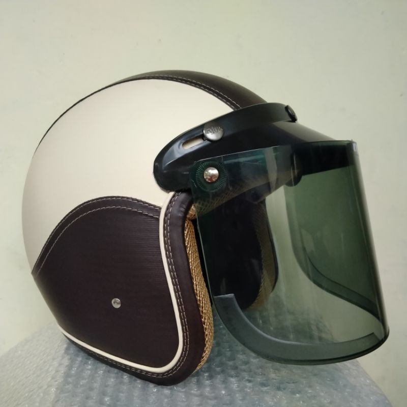 Helm Bogo Dewasa SNI Kaca Datar Retro Pria Wanita Classic Garis