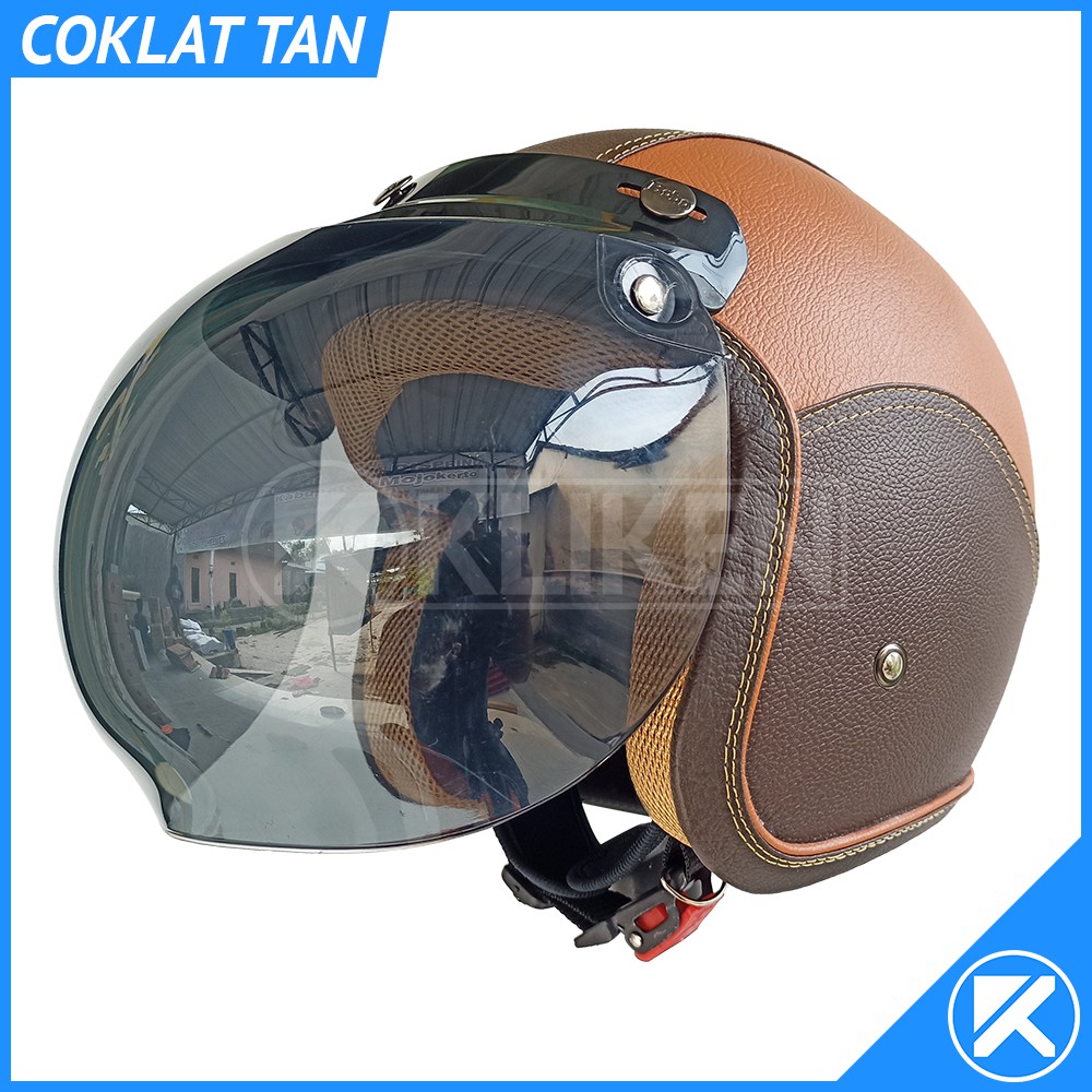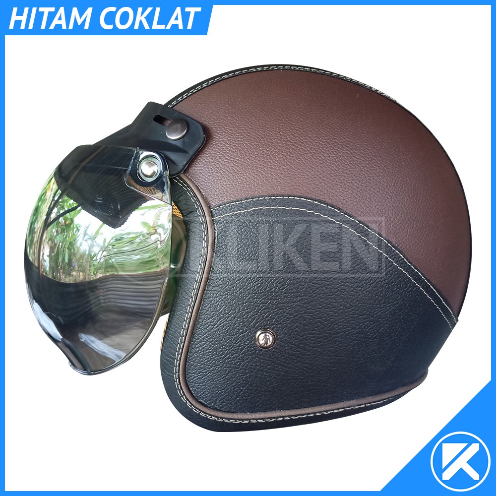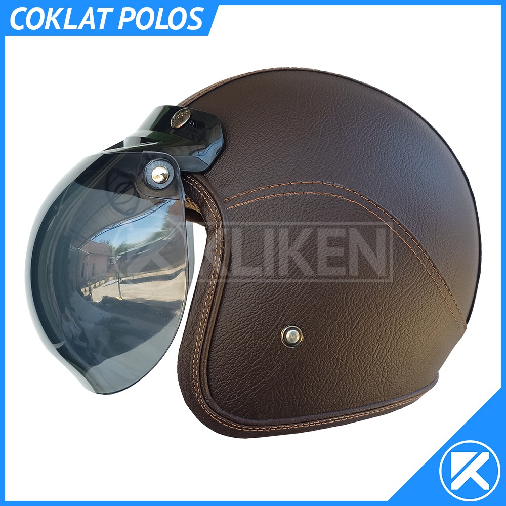 Helm Bogo Dewasa Full Leher Kulit Dengan Kaca Cembung