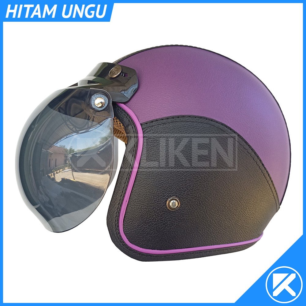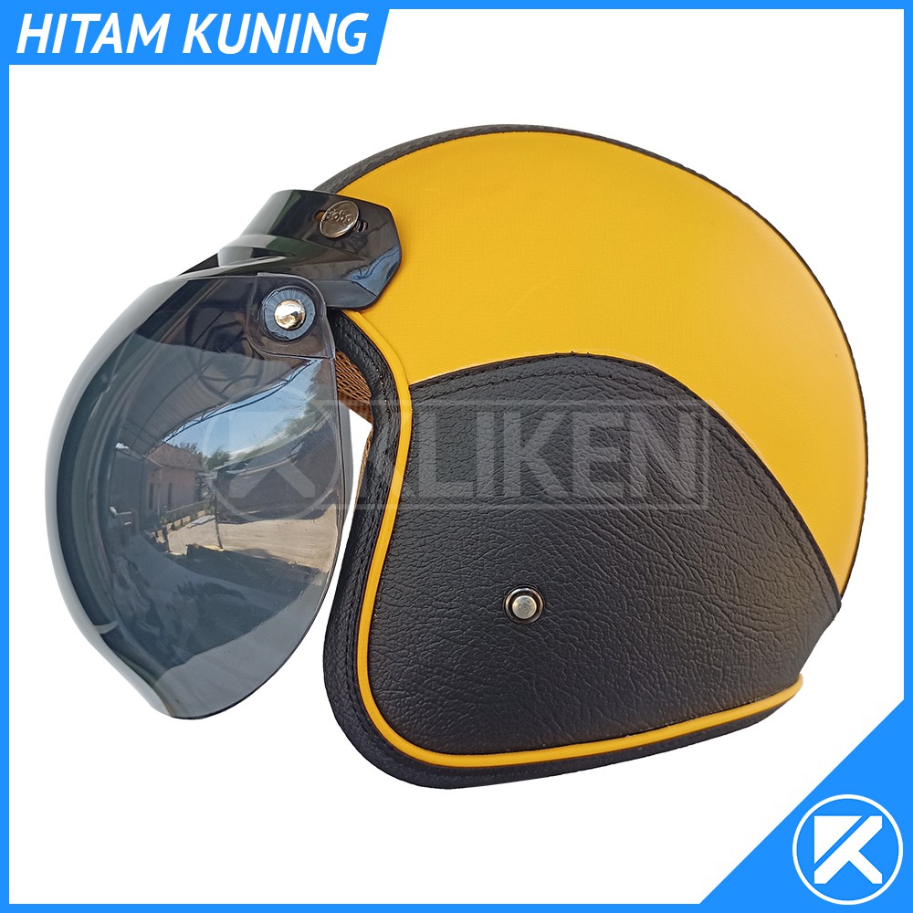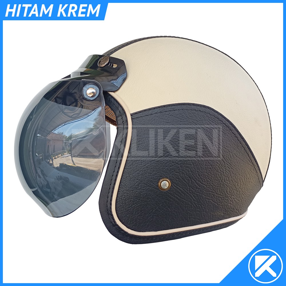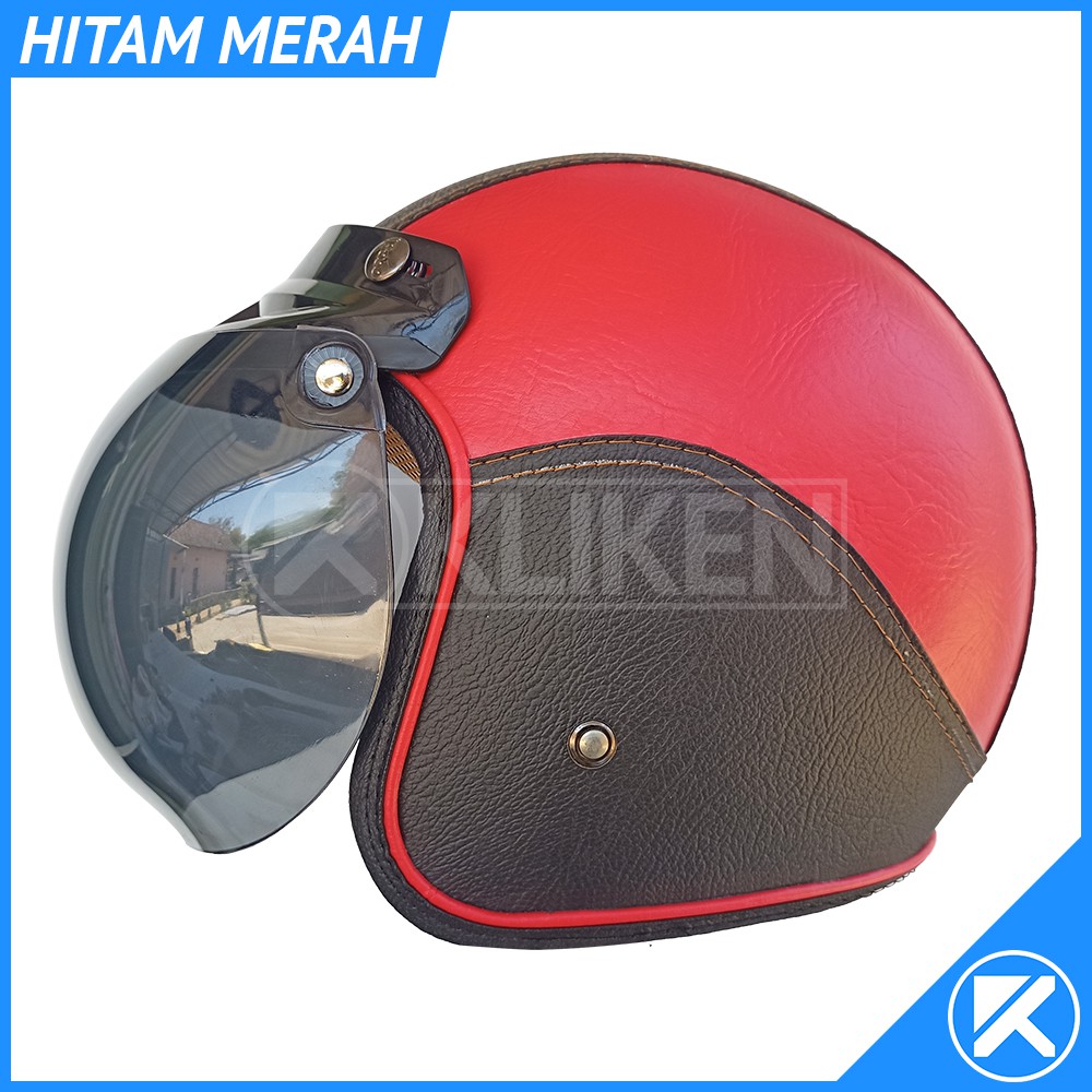 Helm Bogo Dewasa Full Leher Kulit Dengan Kaca Cembung