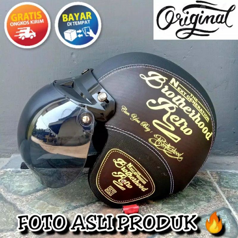 Helm Bogo Retro Full Kulit Batik Coklat Mocca Unik Kaca Bogo Ori Cembung Pink,Helm Bogo Full Leher