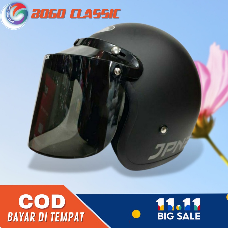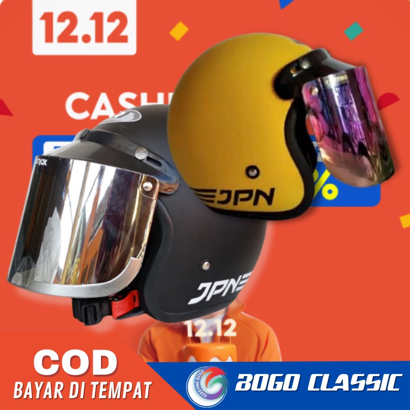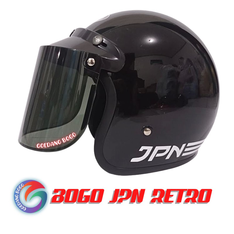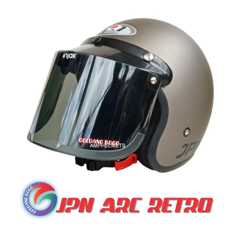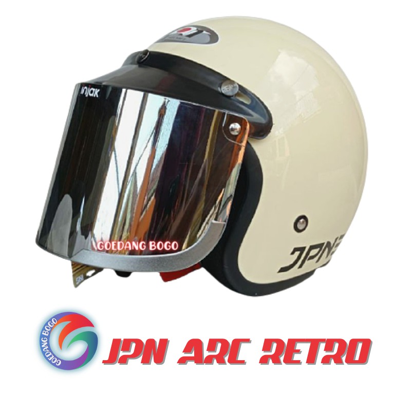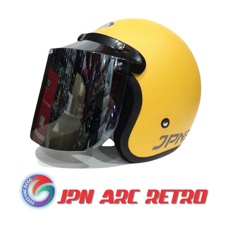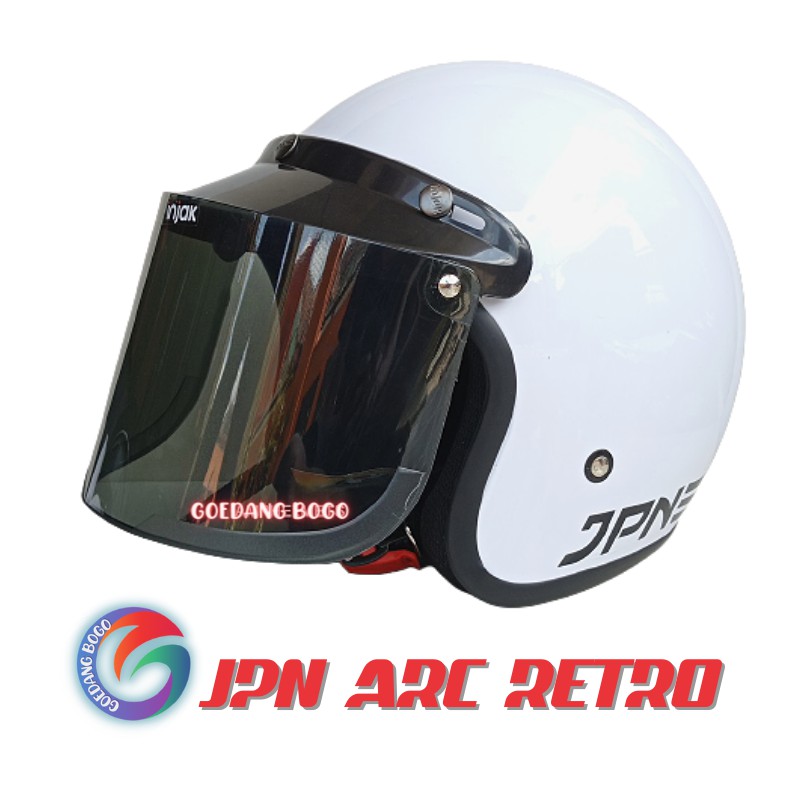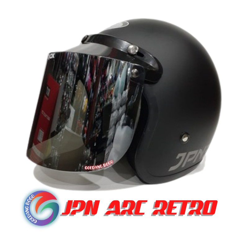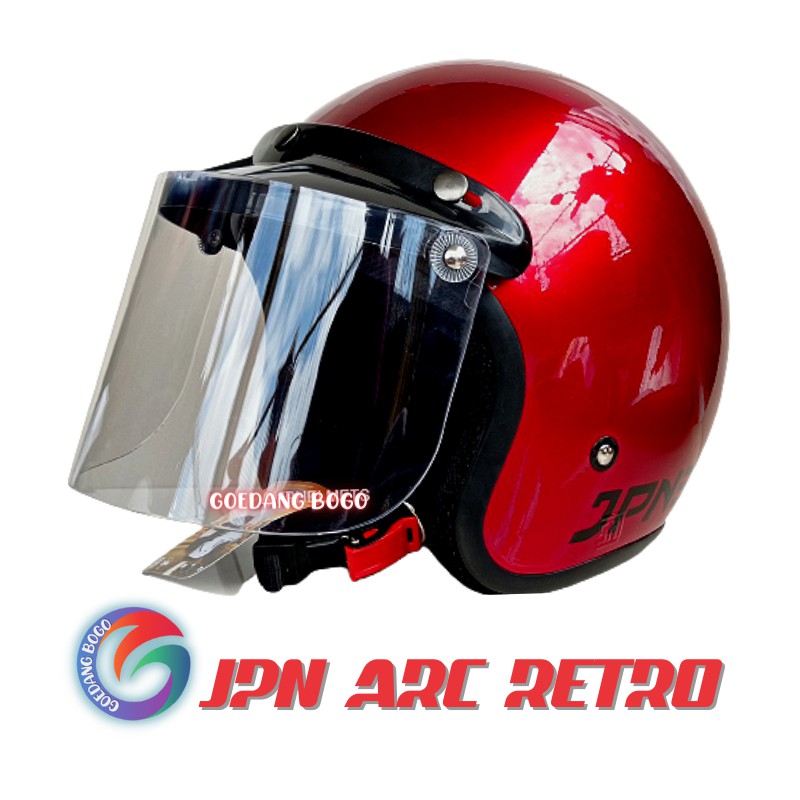 Helm Bogo Dewasa JPN ARC Retro Original Full Leher Standart SNI Untuk Cowok Cewek Paket dengan Kaca Datar Atau Cembung Bebas Pilih