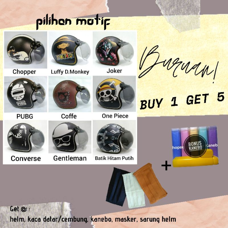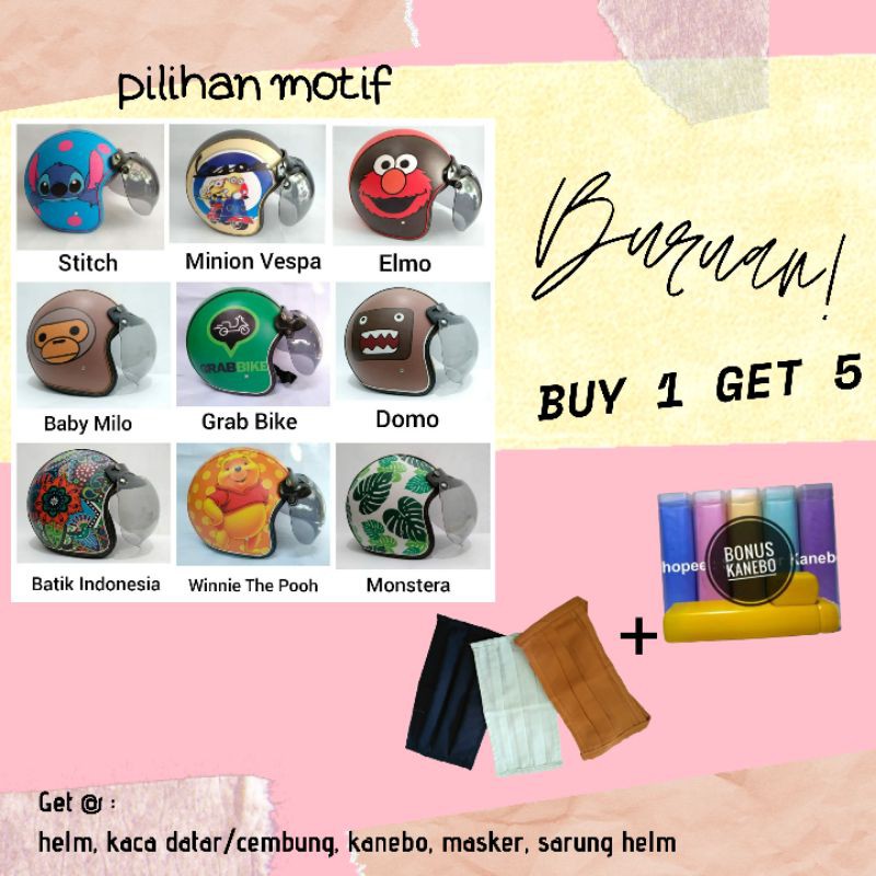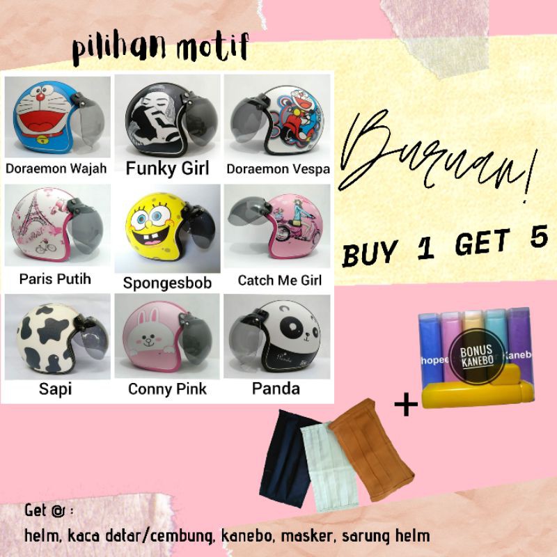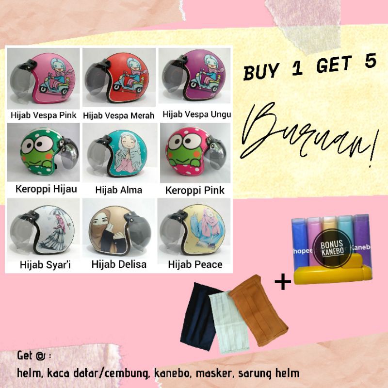 Rifan Juga punya 4 Produk lain terkait Produk helm bogo DEWASA karakter keroppi doraemon hello kitty domo monyet elmo love shabby, helm bogo hijab yang perlu Anda lirik karena menarik, Produk itu adalah....