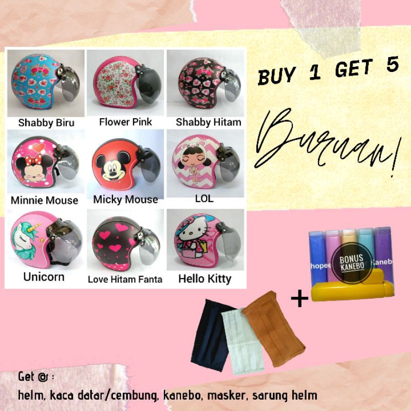 - Produk ini tidak sedang Flash Sale, tidak semua Seller suka Flash Sale, saya rasa ini bukan kekurangan, Jika Anda anggap Harga Rp. 99.000,00 itu murah untuk helm bogo DEWASA karakter keroppi doraemon hello kitty domo monyet elmo love shabby, helm bogo hijab ya ambil saja