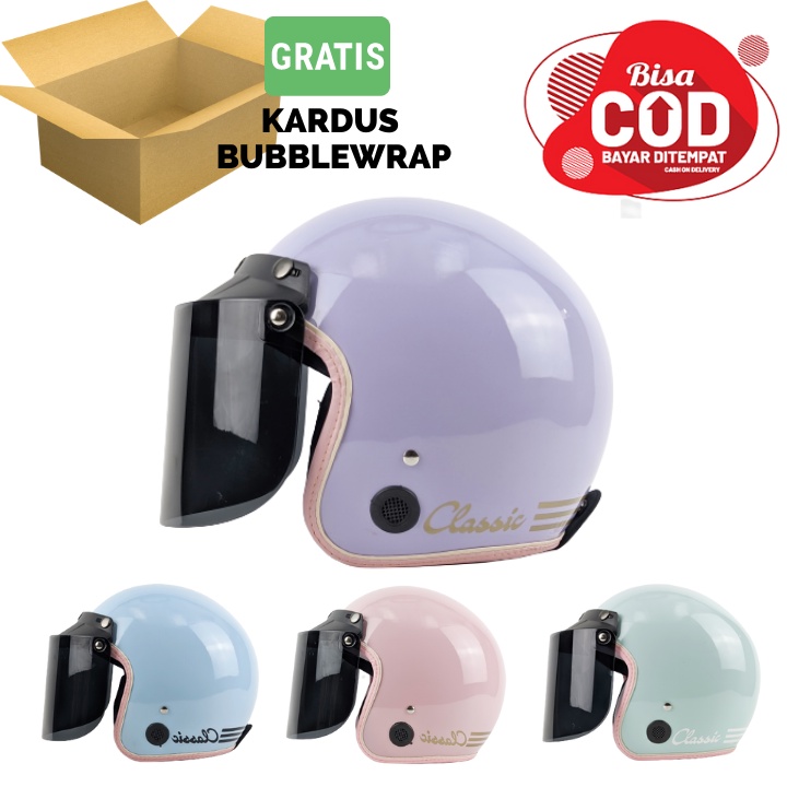 Helm Bogo Dewasa Polos Retro Wanita Classic Warna Pastel Kekinian Terlaris Original