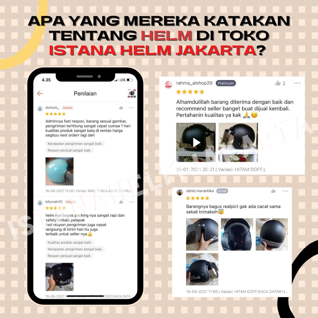 - Produk ini tidak sedang Flash Sale, tidak semua Seller suka Flash Sale, saya rasa ini bukan kekurangan, Jika Anda anggap Harga Rp. 95.000,00 itu murah untuk Helm Bogo Dewasa Polos Retro Wanita Classic Warna Pastel Kekinian Terlaris Original ya ambil saja