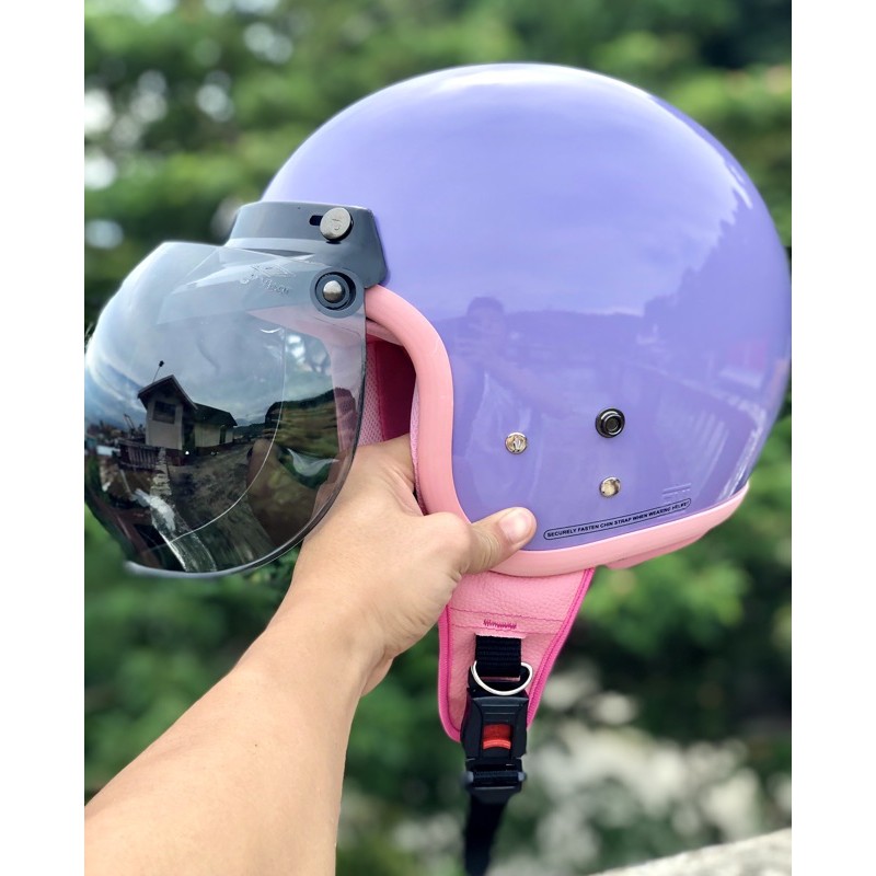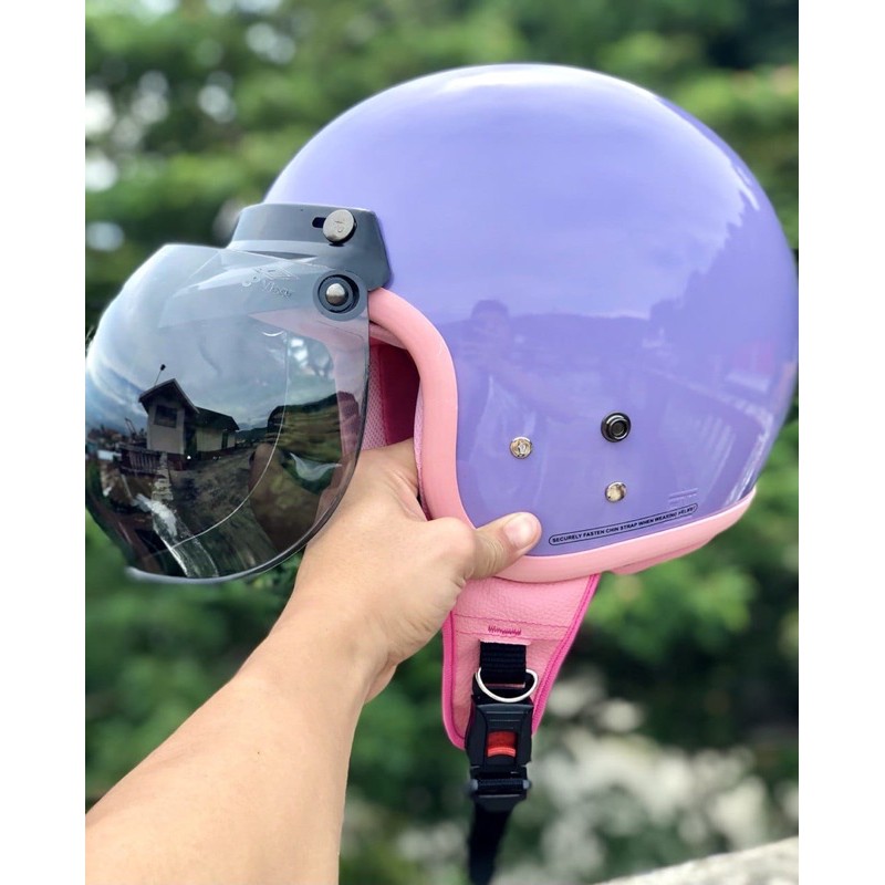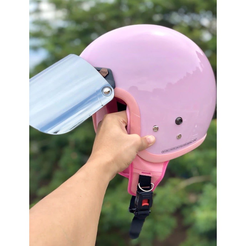 Helm Bogo Jpn Retro Pink Magenta Doff Kaca Datar Flat Visor