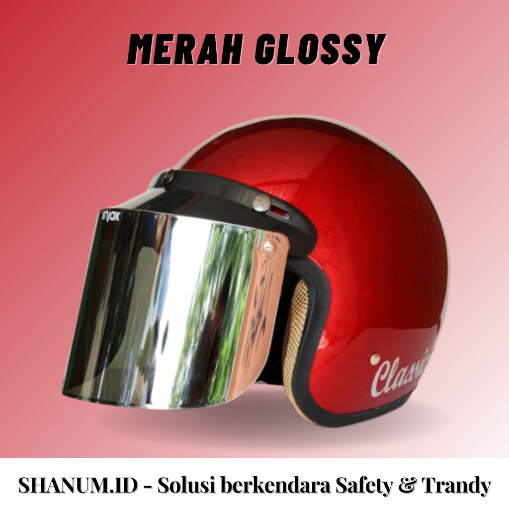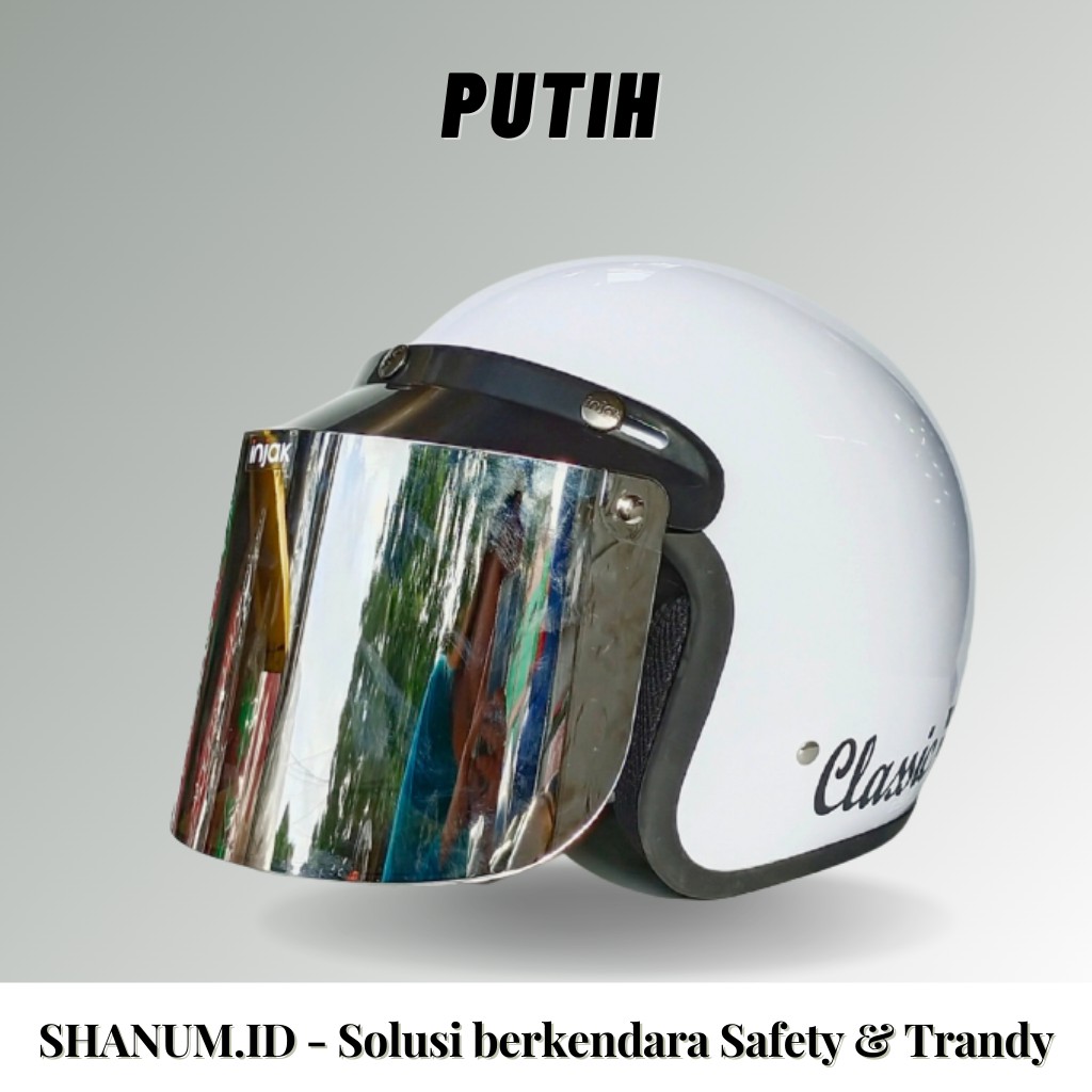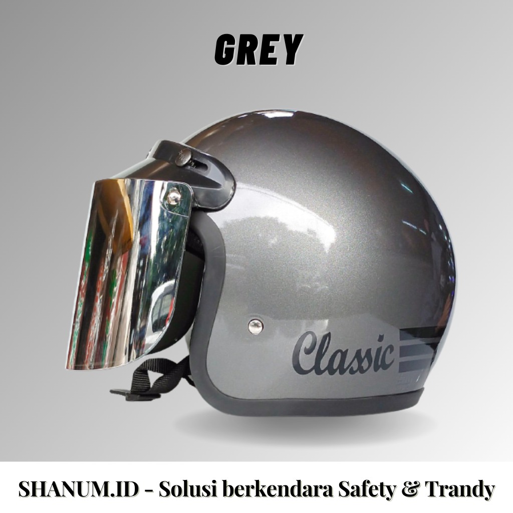 Helm Bogo Dewasa Wanita Kaca Datar Silver Injak Cowok Cewek Polos Klasik Classic Sni Camelia Murah