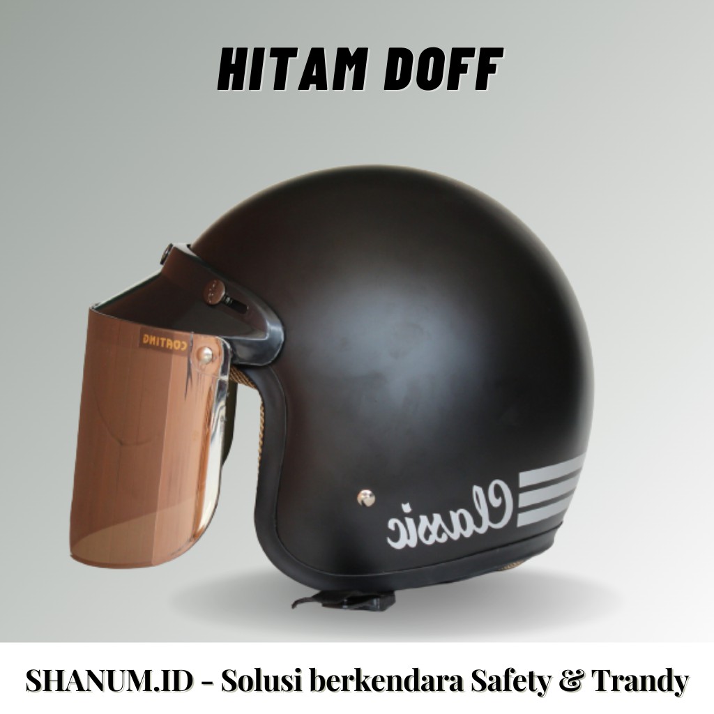 Helm Bogo Dewasa Classic Pria Wanita Sni Polos Motor warna HITAM DOFF