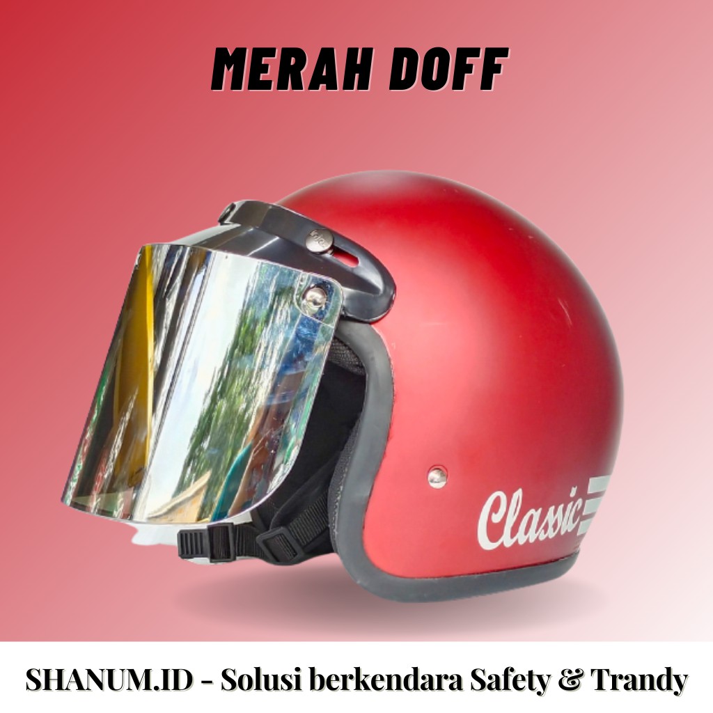 Helm Bogo Retro JPN ARC Merah Maroon Doff Kaca Visor Flat Datar Cembung