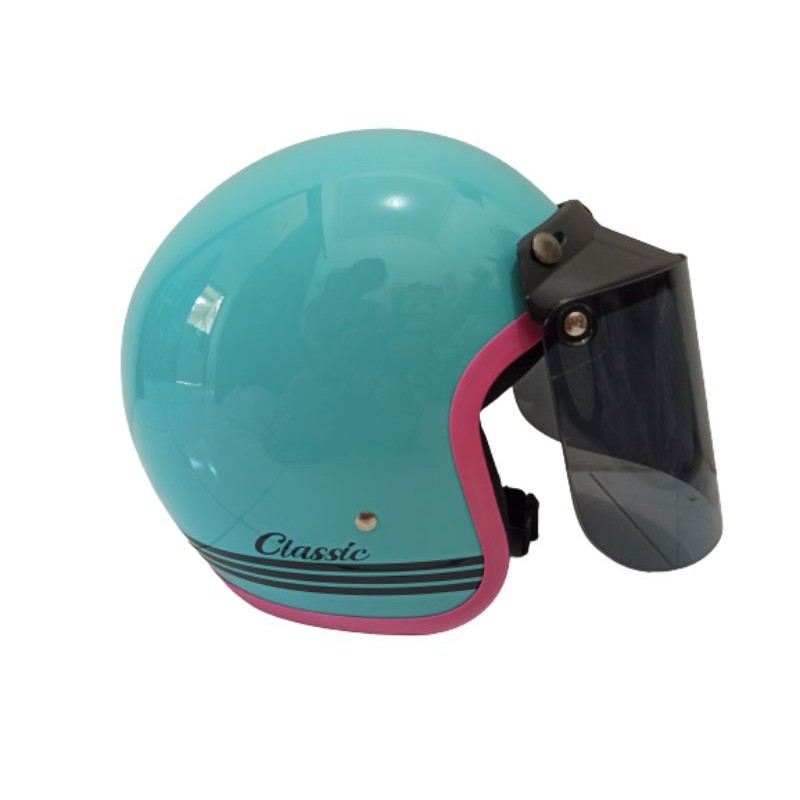 HELM BOGO RETRO WARNA PASTEL LIST CHROME DEWASA
