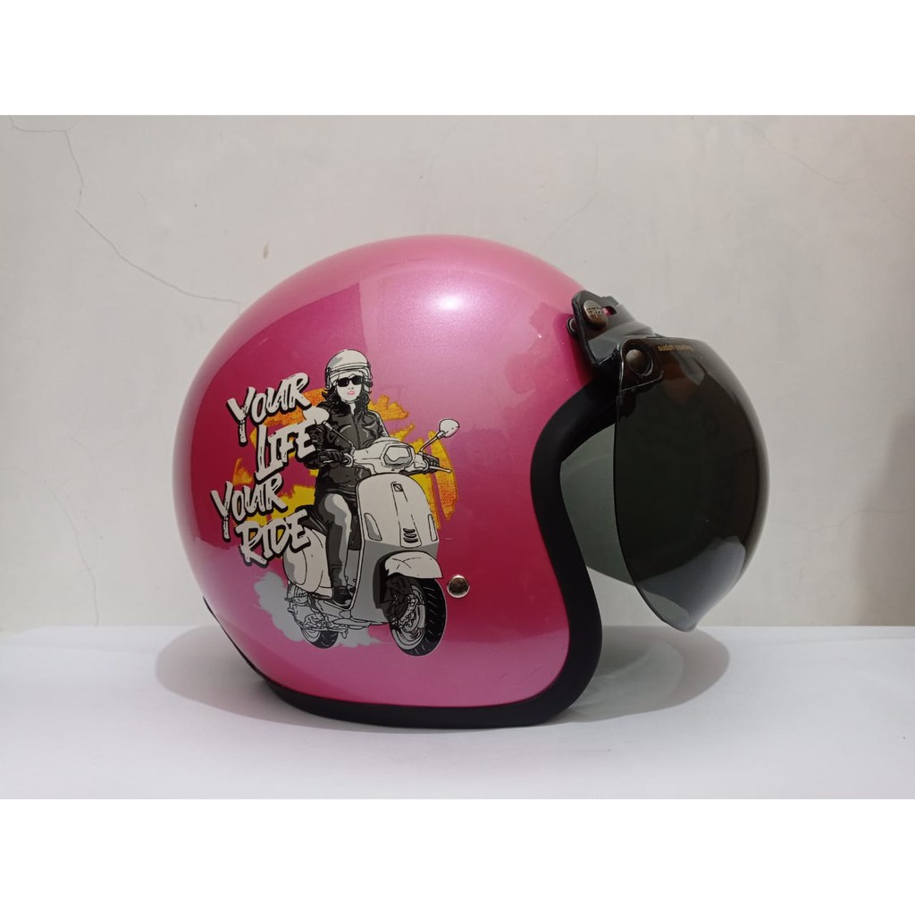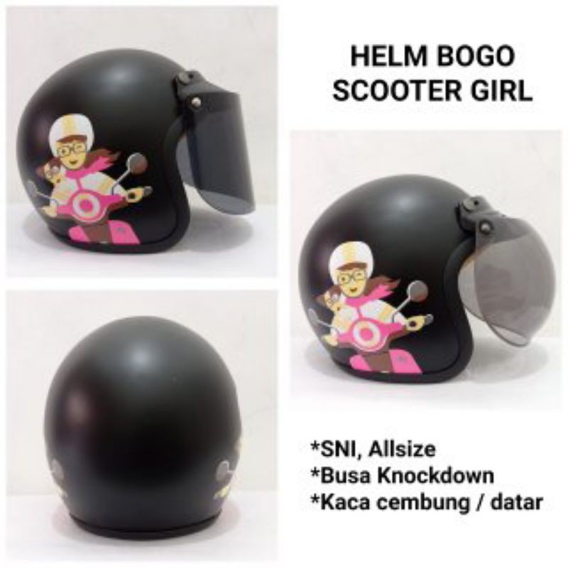 HELM BOGO DEWASA WANITA FUll LEHER SNI CANTIK LUCU RETRO BOGO terbaru