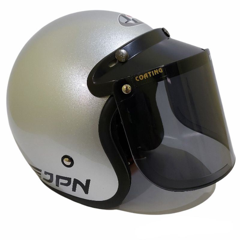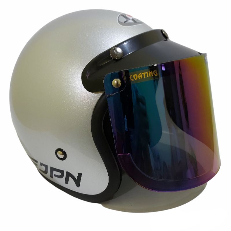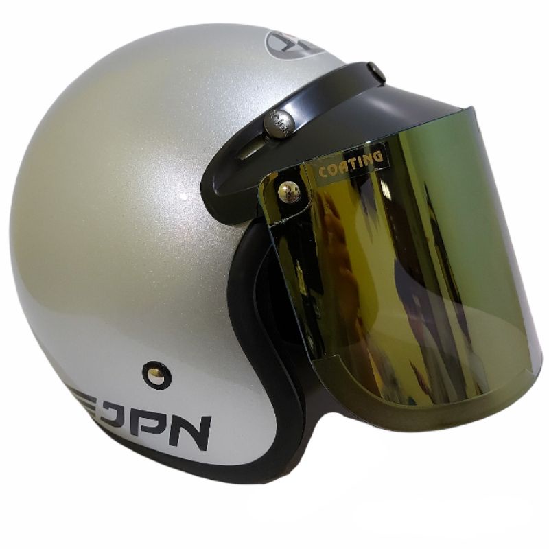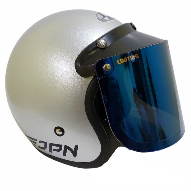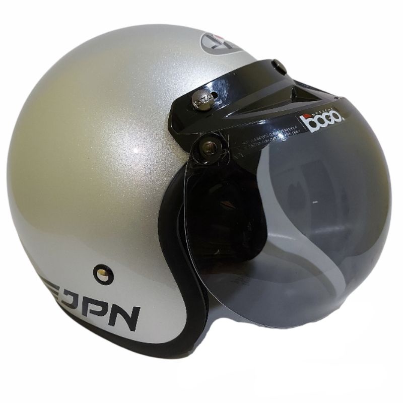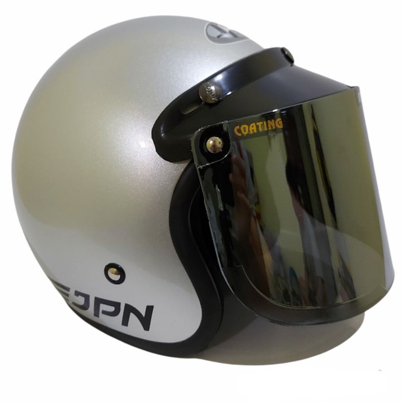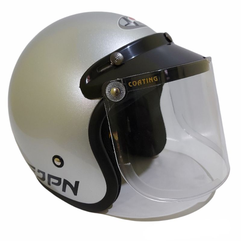 Helm bogo jpn retro arc silver glossy kaca datar flat visor