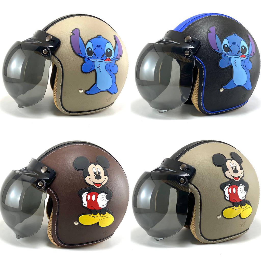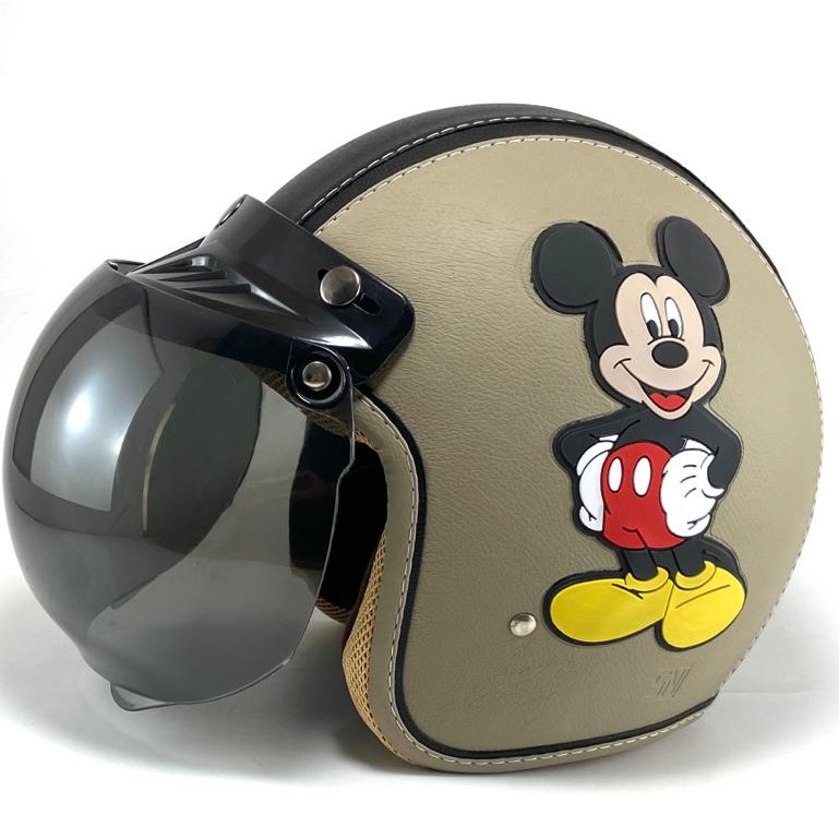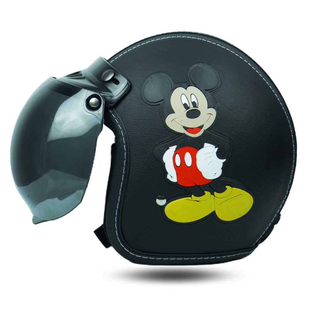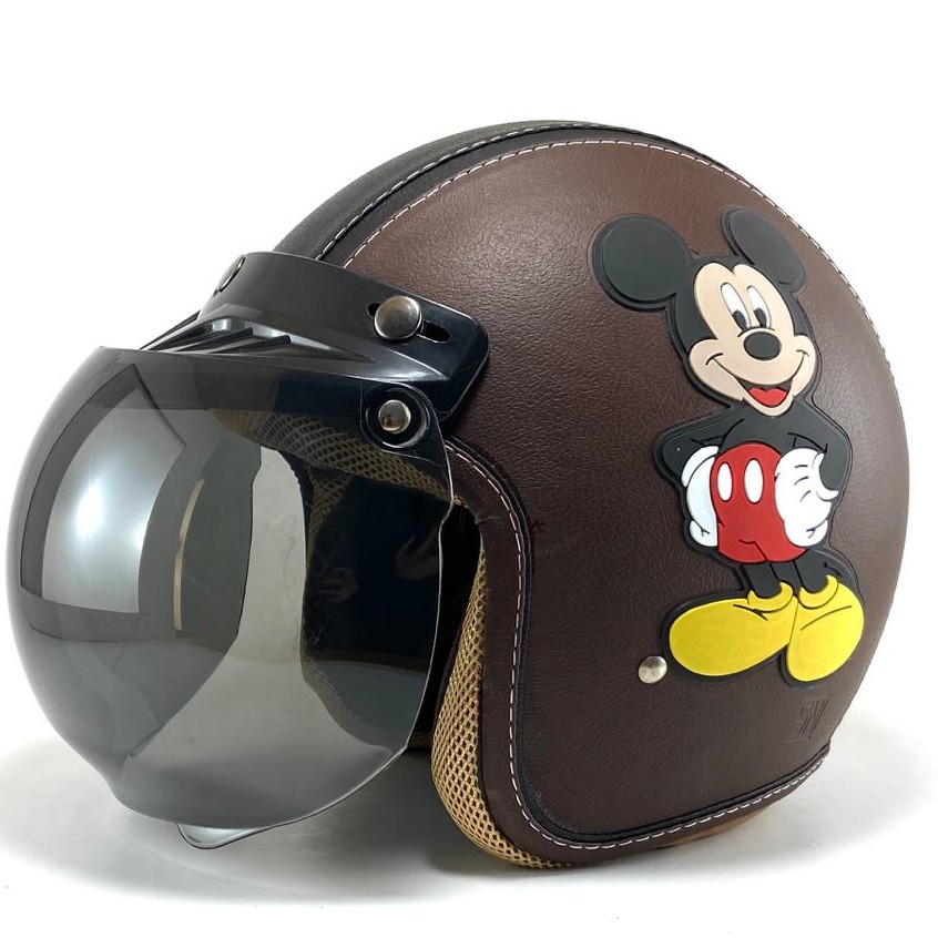 Helm Bogo Retro Kulit Dewasa Kaca Bogo Original Motif Mickey Mouse TPR Merah