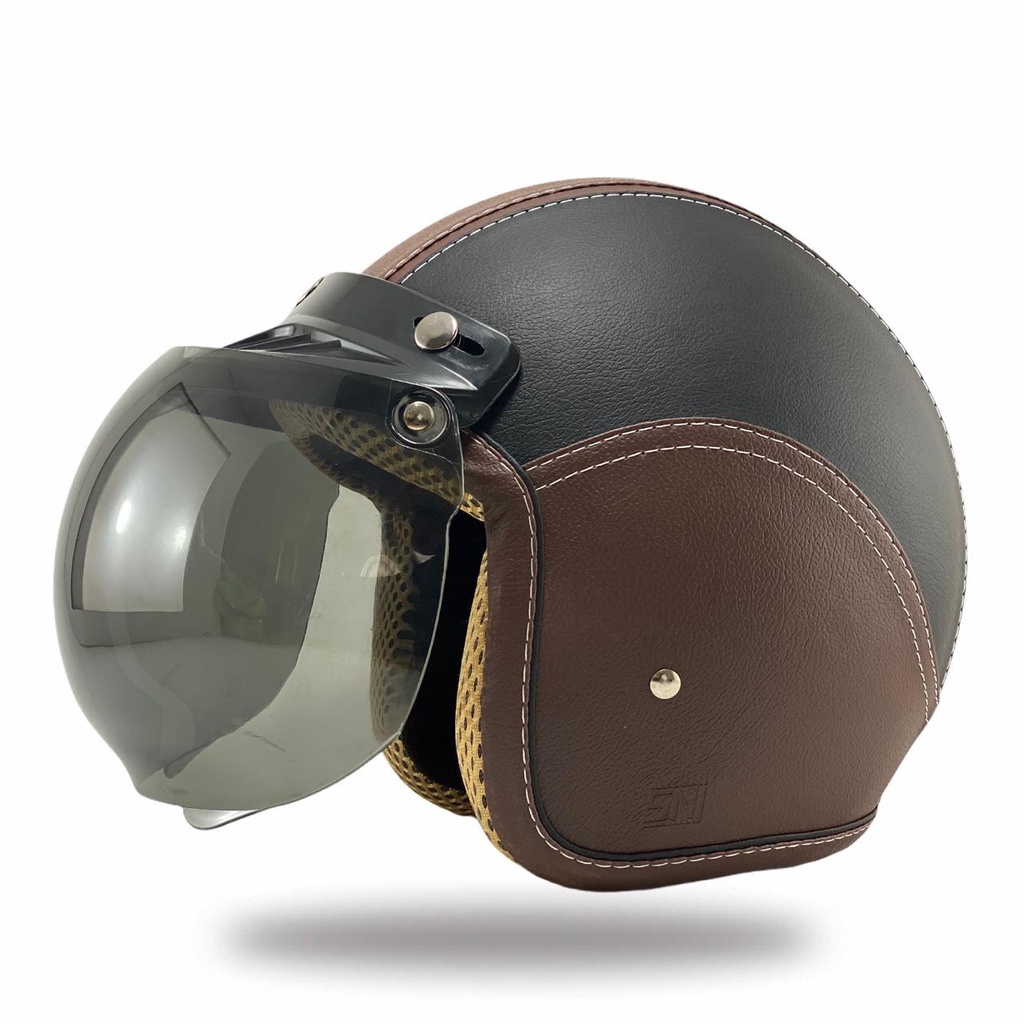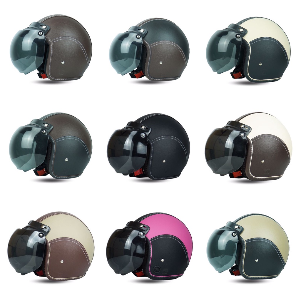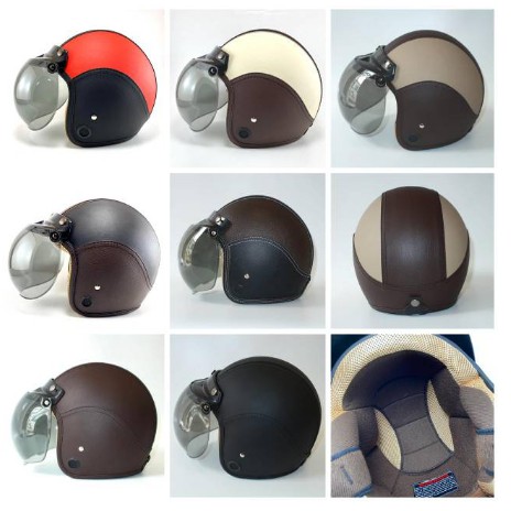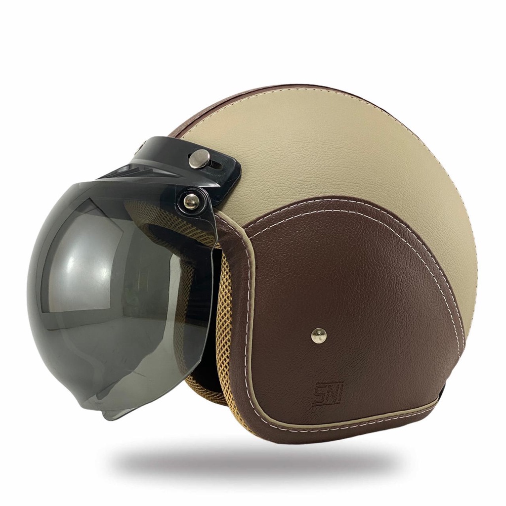 HELM HELEM BOGO PRIA WANITA DEWASA RETRO POLOS GARIS SNI FULL LEHER