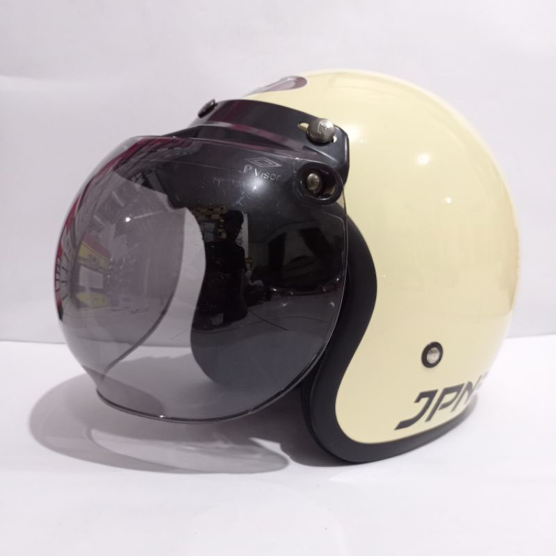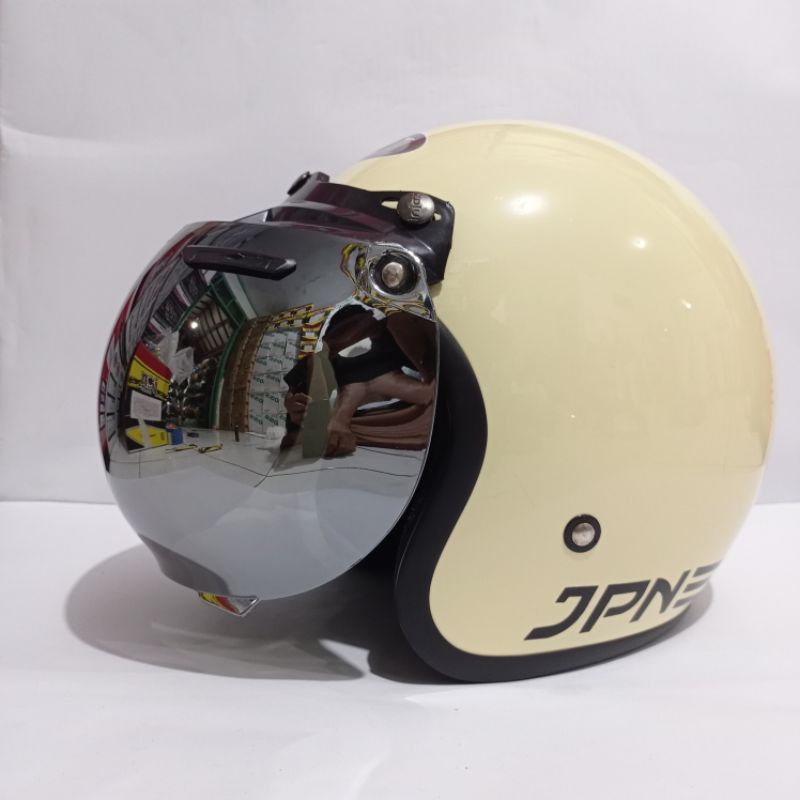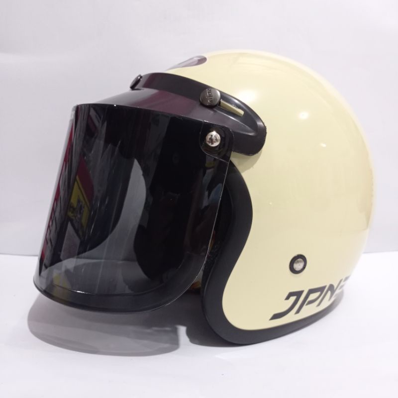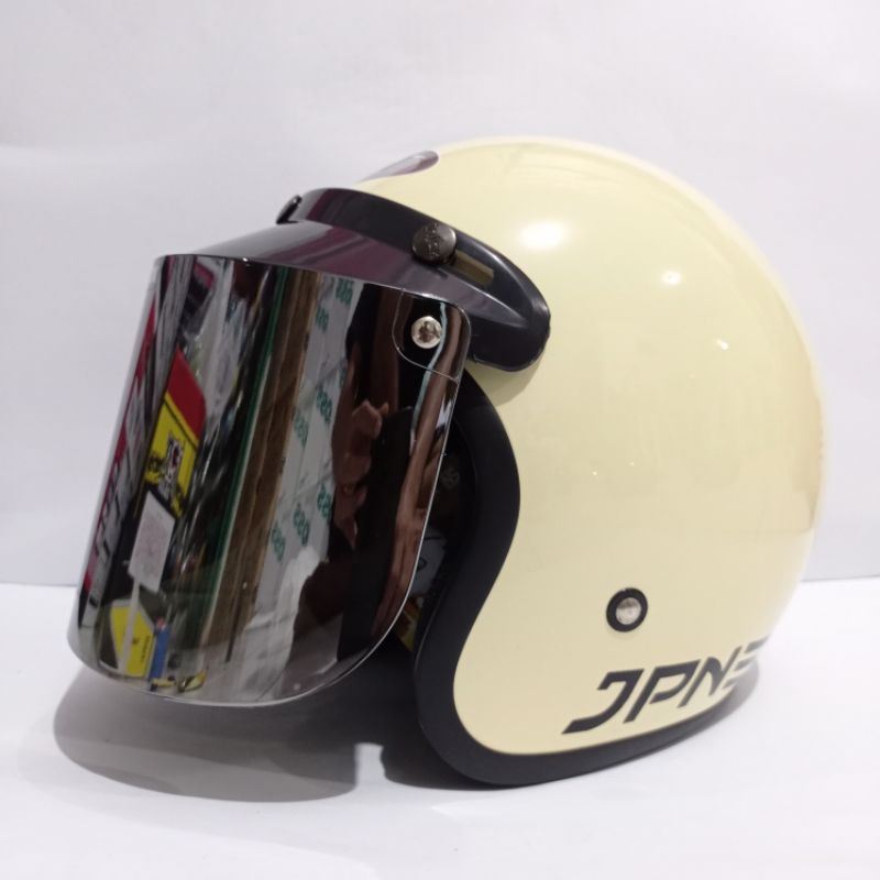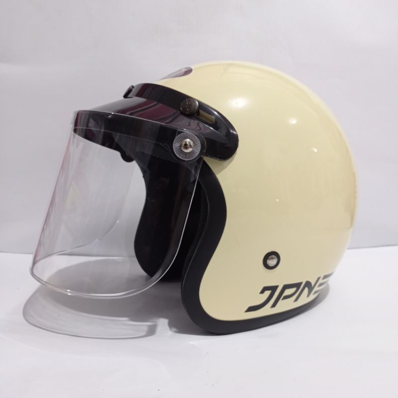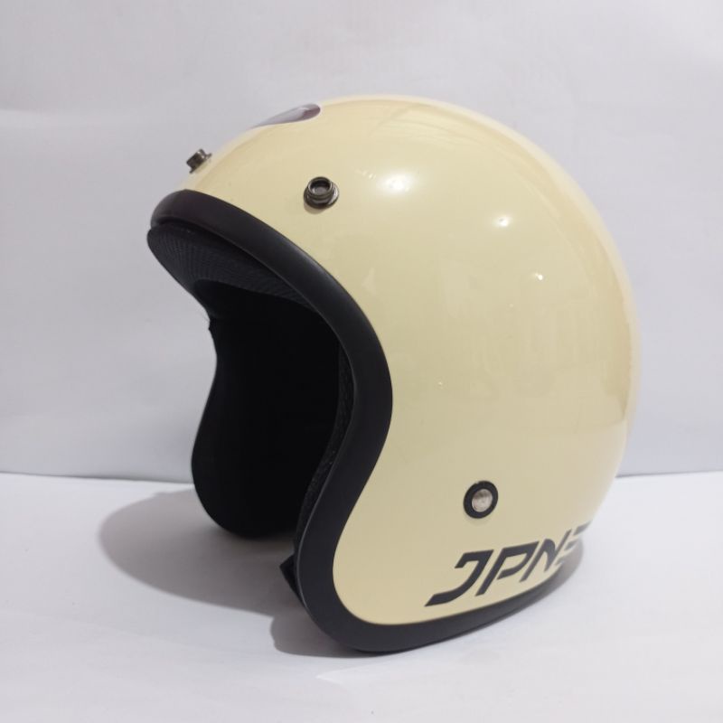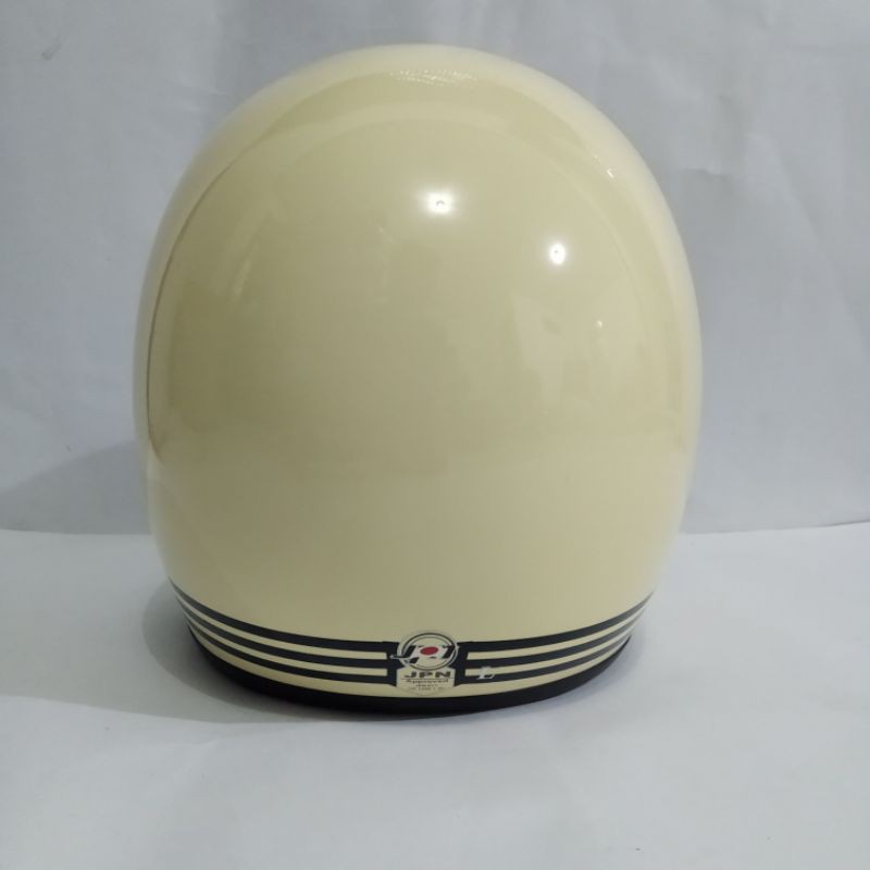 helm bogo polos jpn retro arc garis tiga warna cream glossy