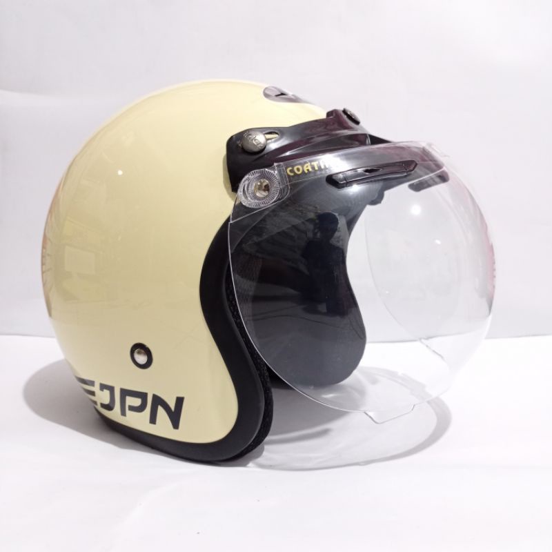 helm bogo dewasa wanita retro kaca datar list full leher