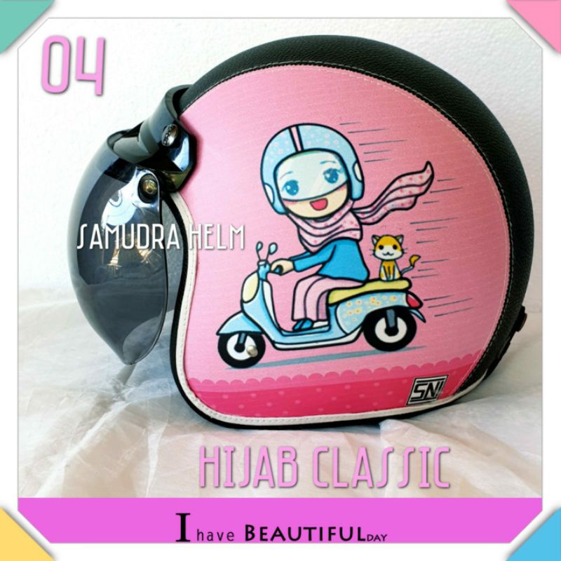 helm bogo classik pastel wanita dewasa kaca flat datar injak