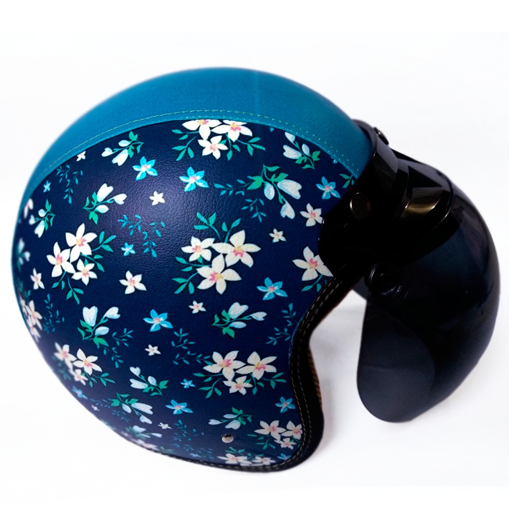 Helm Bogo Retro Dewasa Kulit Motif Bunga - Bunga Kaca Bubble halfface