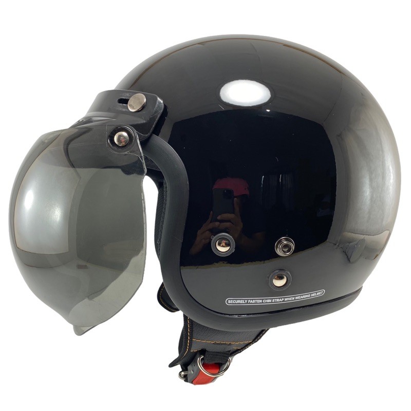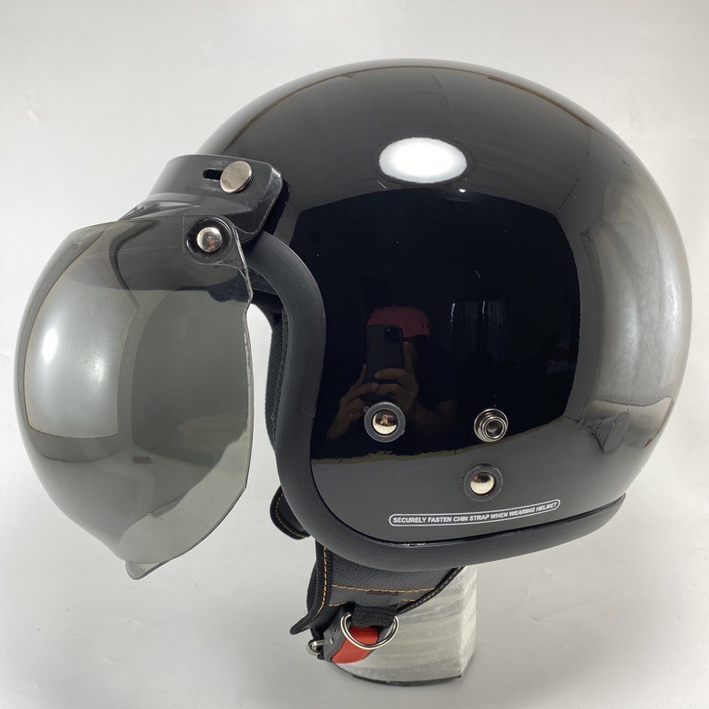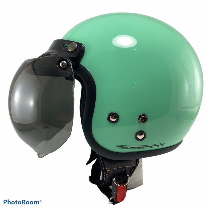 HELM BOGO CLASSIC DEWASA HITAM KACA DATAR SMOKE