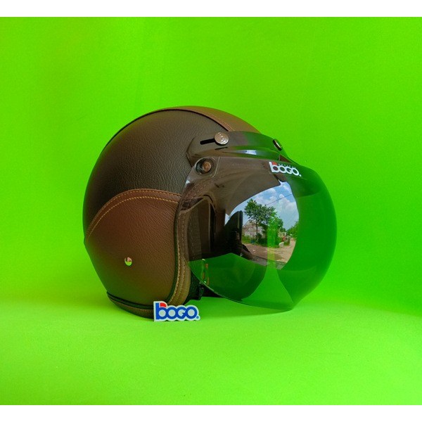 Alasan kenapa harus beli Helm Bogo Retro Kulit Dewasa Kaca Bogo Original Warna Bawah Coklat Atas Hitam sekarang
