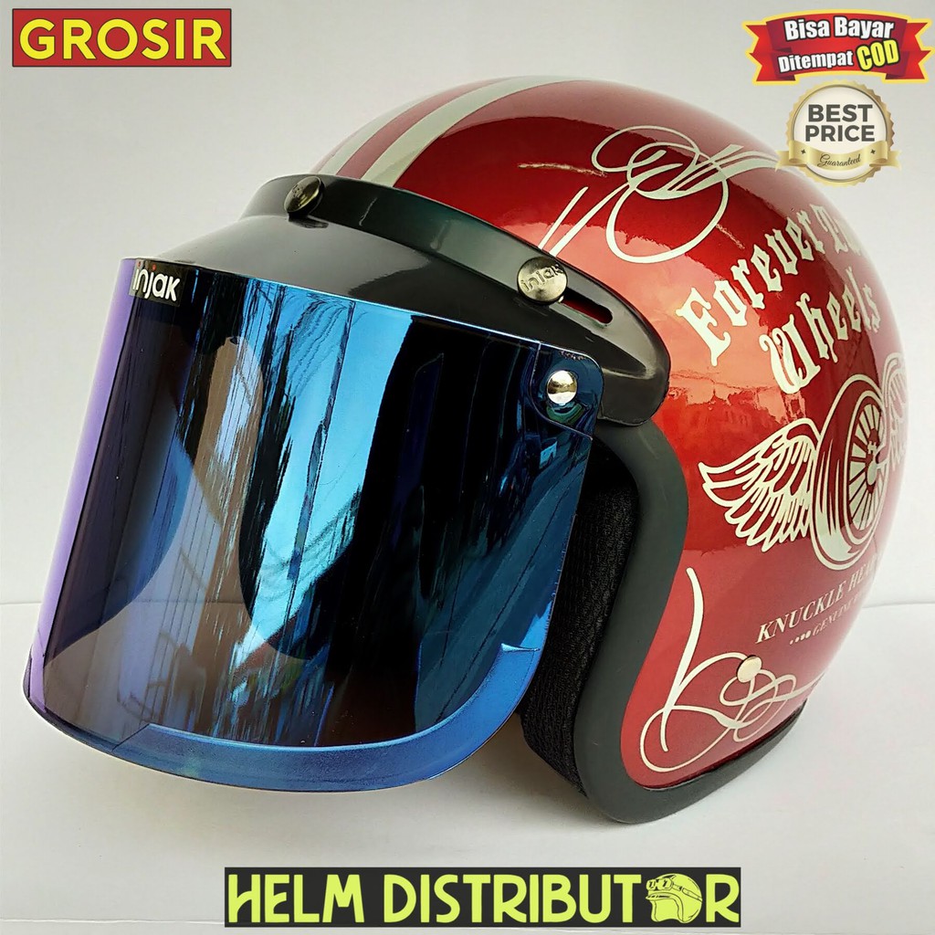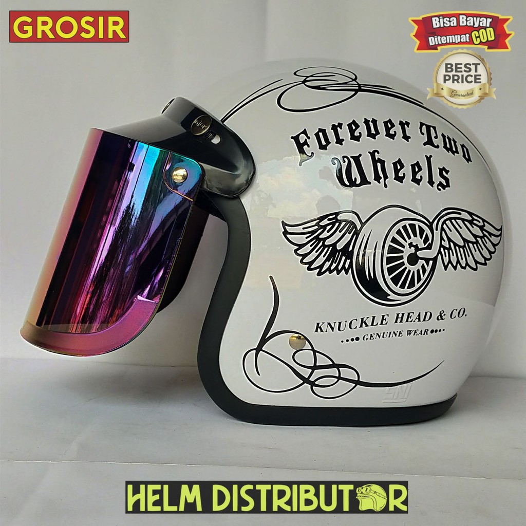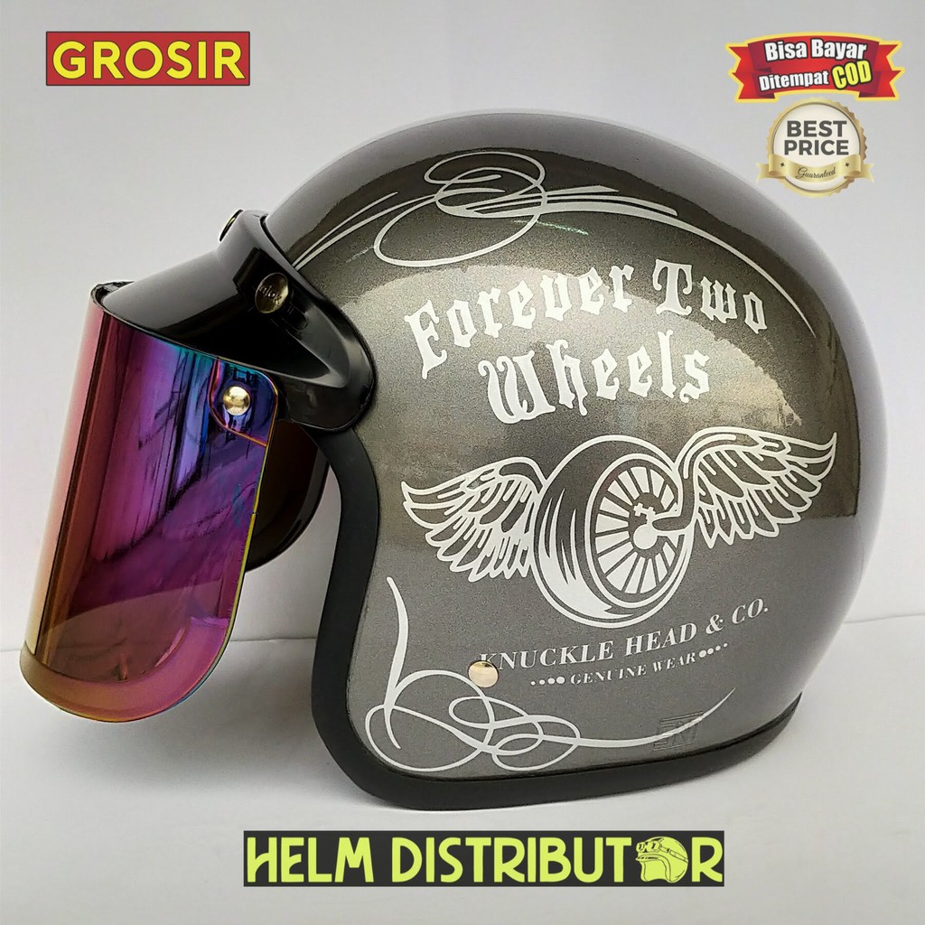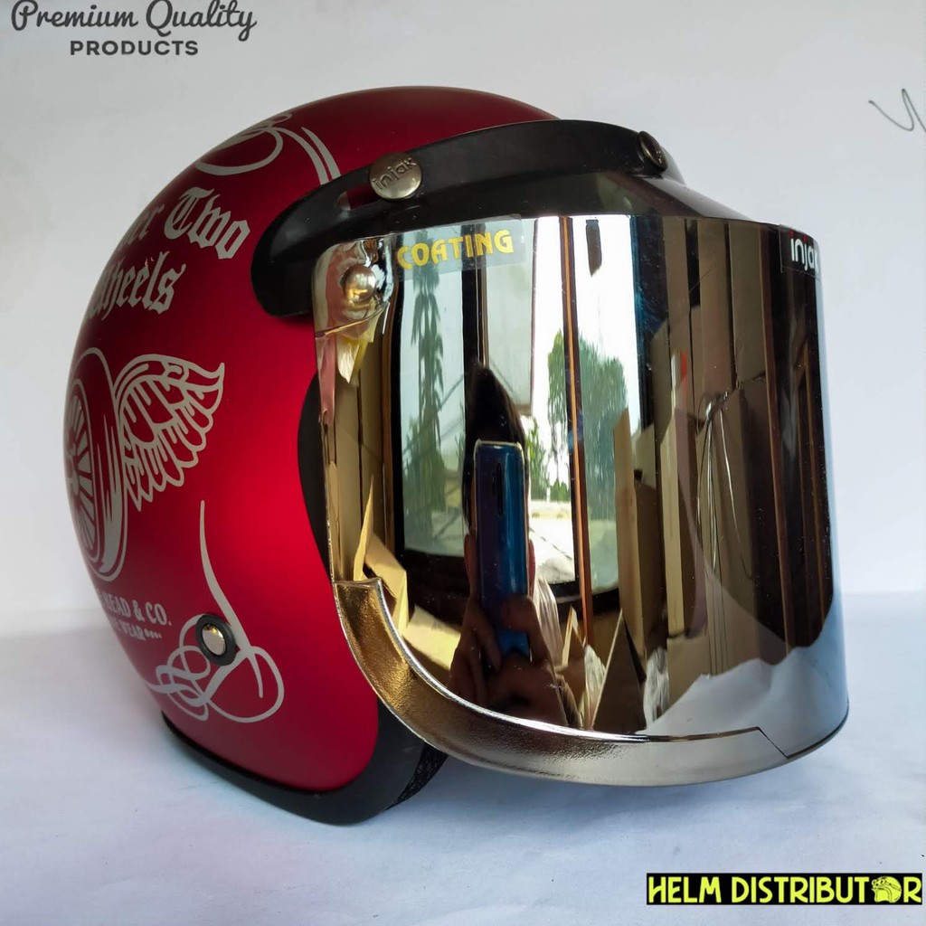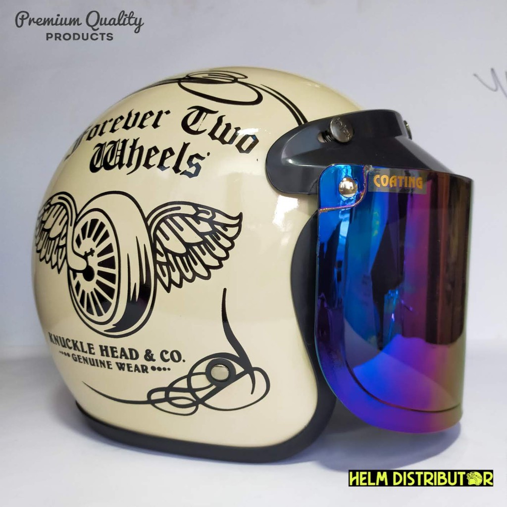 Alasan kenapa harus beli HELM BOGO RETRO MOTIF TWO WHEELS DEWASA KACA DATAR INJAK GOLD/BLUE/SILVER/RAINBOW PRIA WANITA COD sekarang