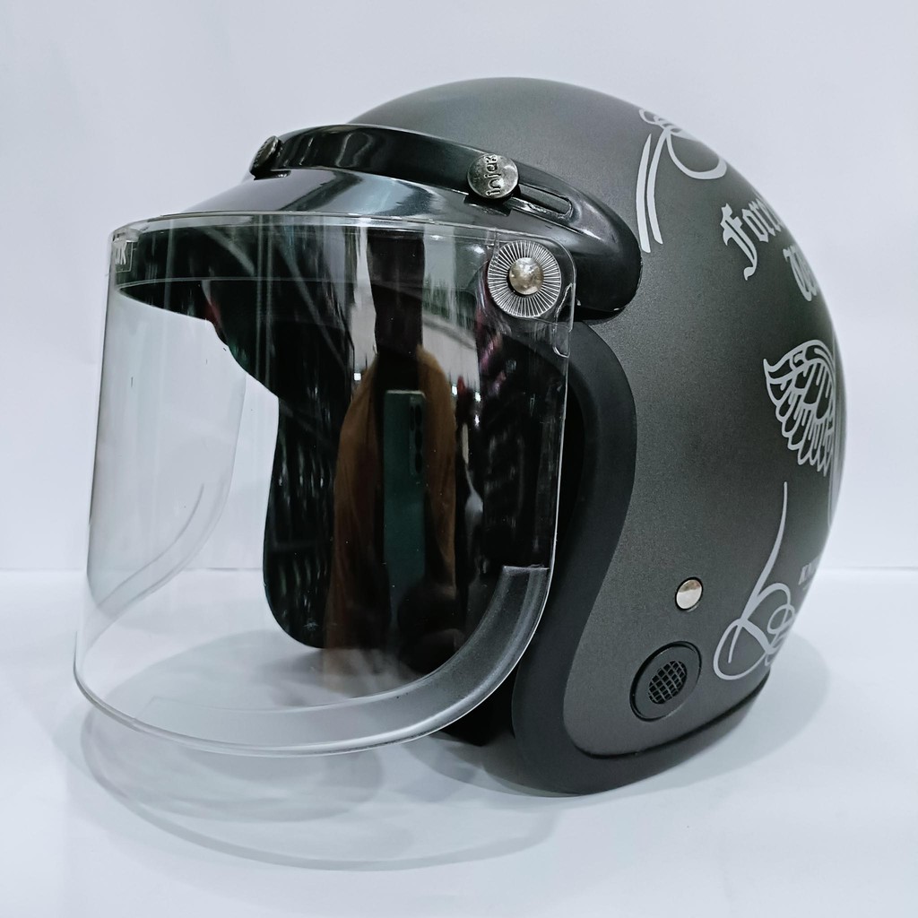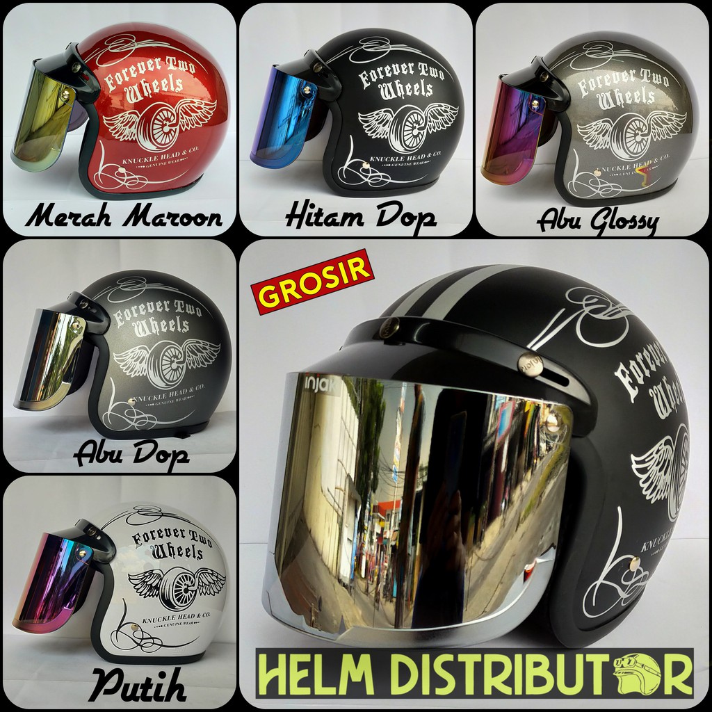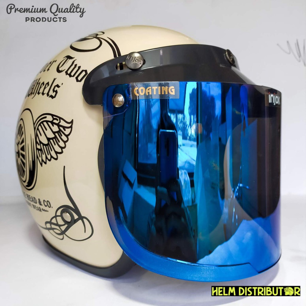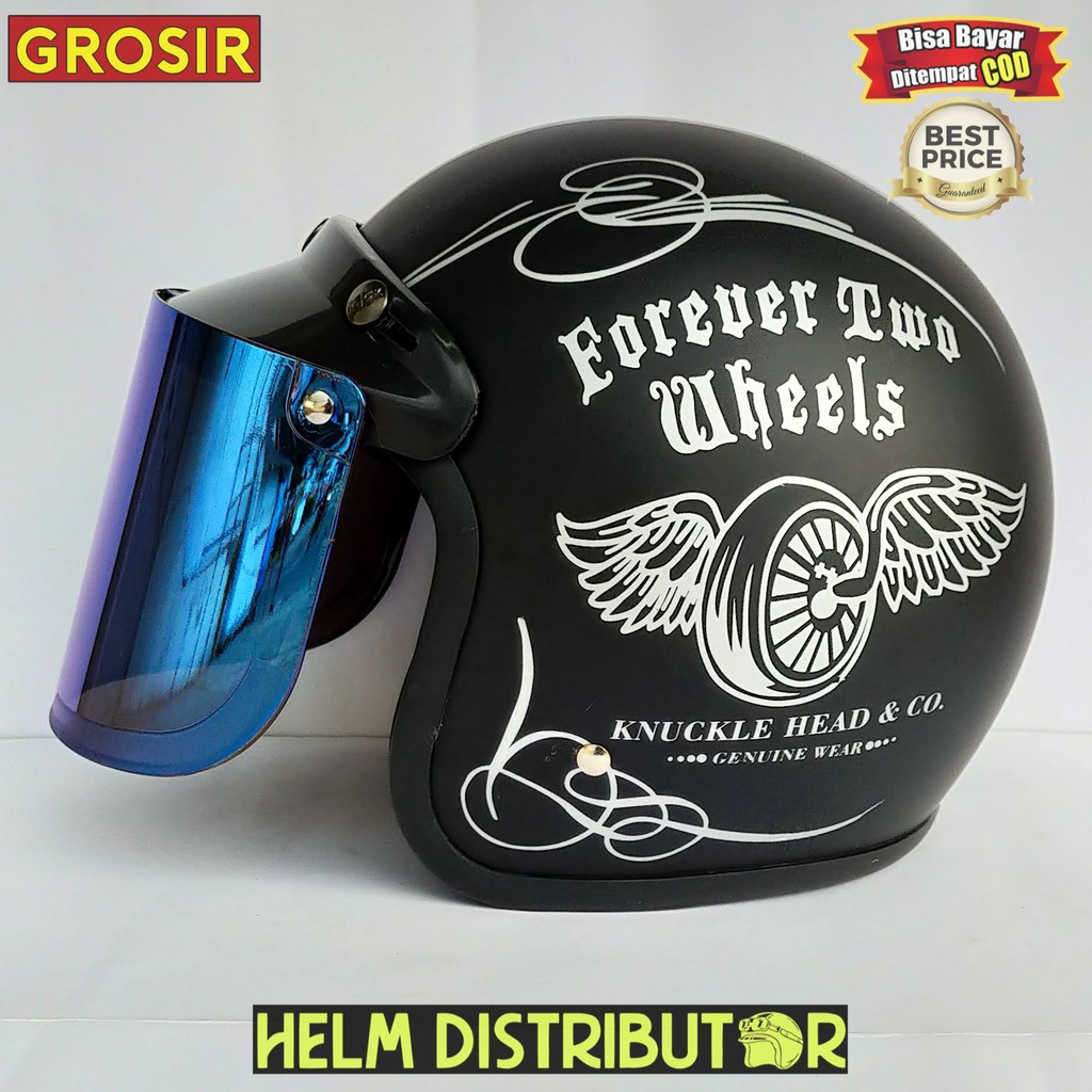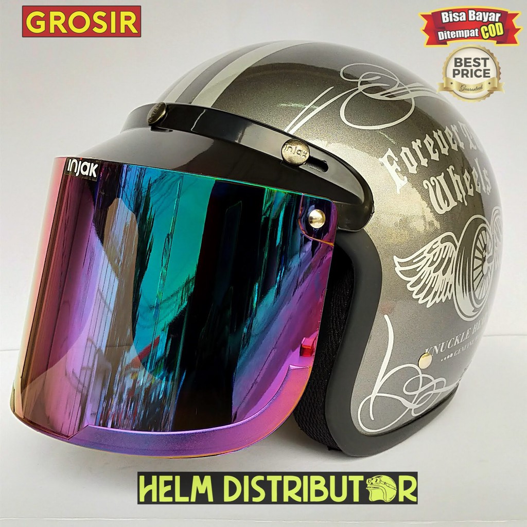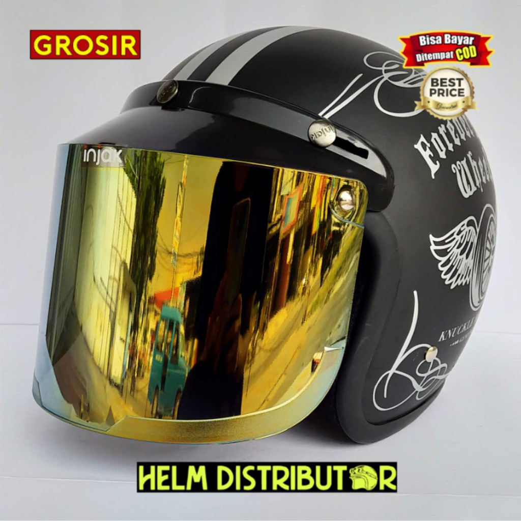 Alasan kenapa harus beli HELM BOGO RETRO MOTIF TWO WHEELS DEWASA KACA DATAR INJAK GOLD/BLUE/SILVER/RAINBOW PRIA WANITA COD sekarang
