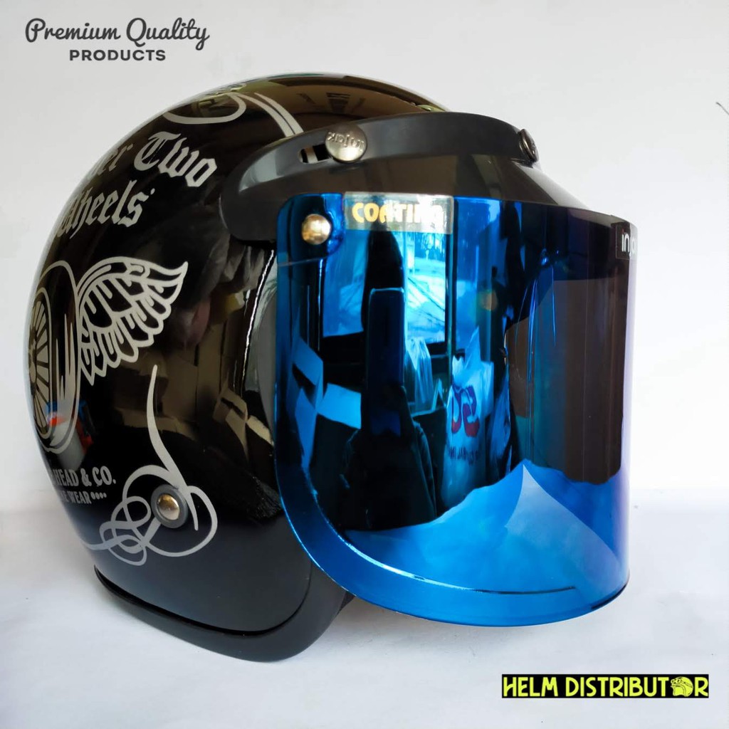HELM BOGO RETRO MOTIF TWO WHEELS DEWASA KACA DATAR INJAK GOLD/BLUE/SILVER/RAINBOW PRIA WANITA COD