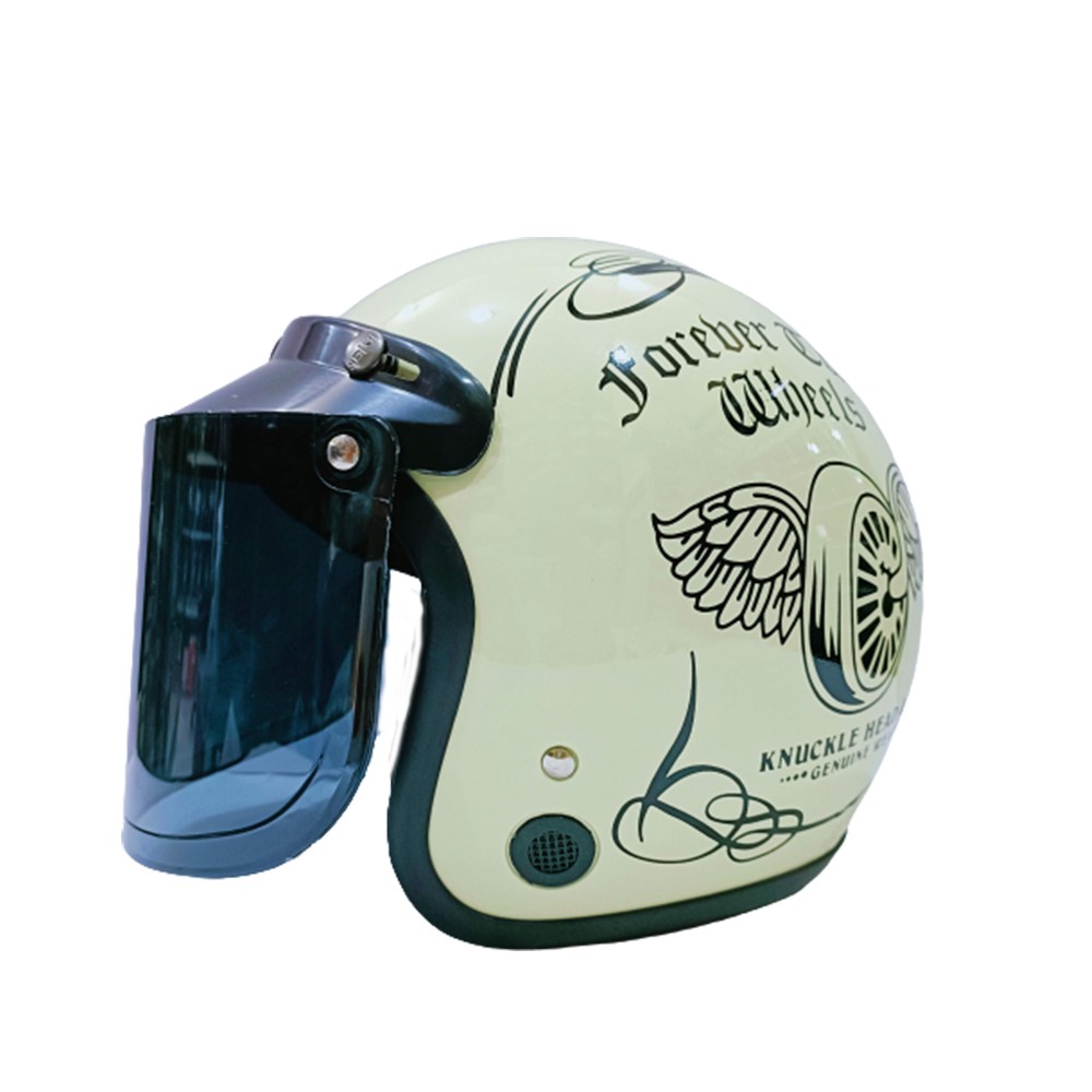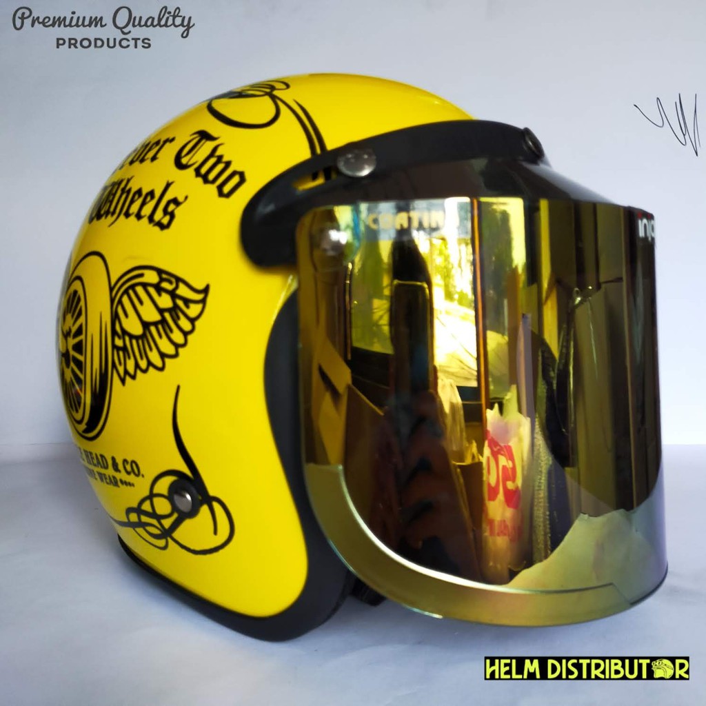 Kelebihan - Kelebihan membeli HELM BOGO RETRO MOTIF TWO WHEELS DEWASA KACA DATAR INJAK GOLD/BLUE/SILVER/RAINBOW PRIA WANITA COD di Toko ini
