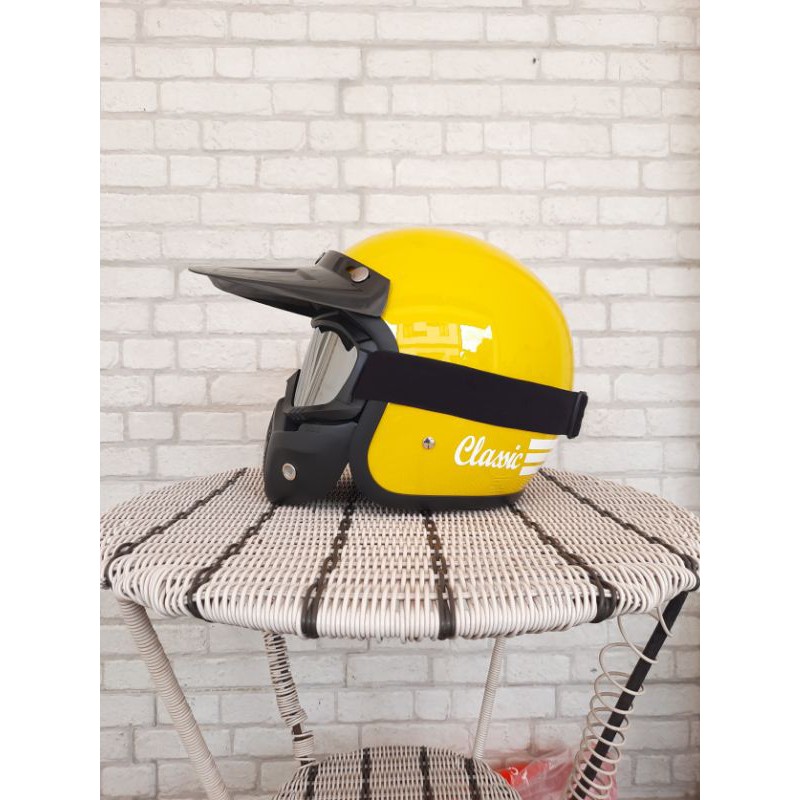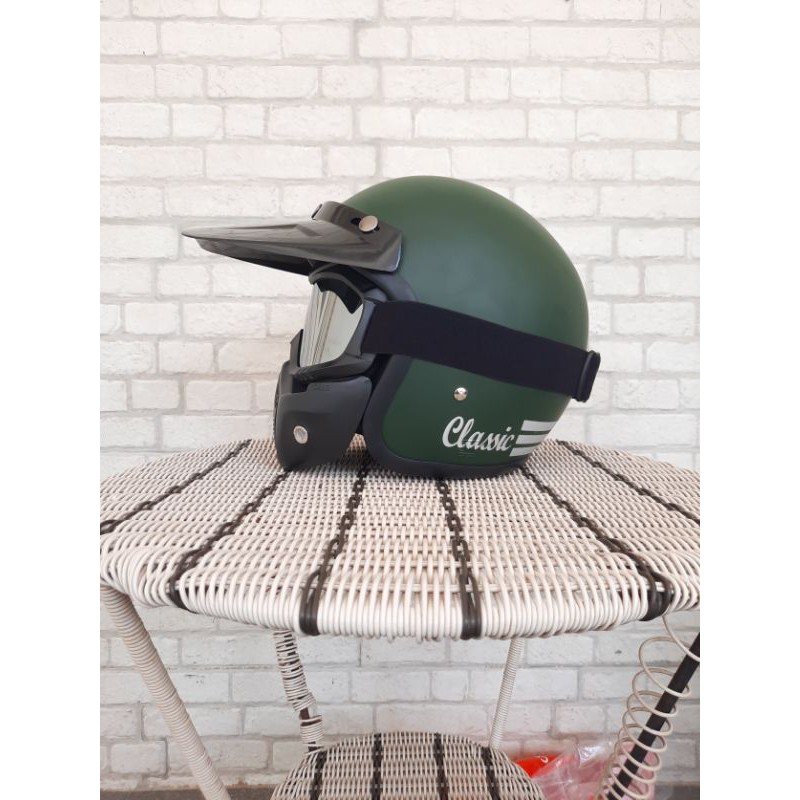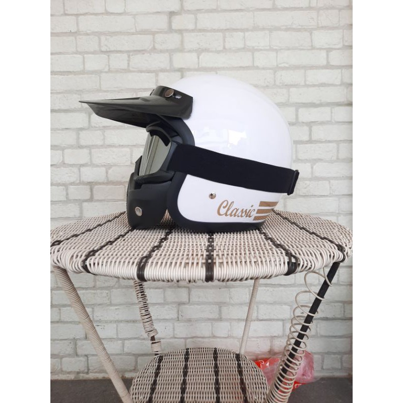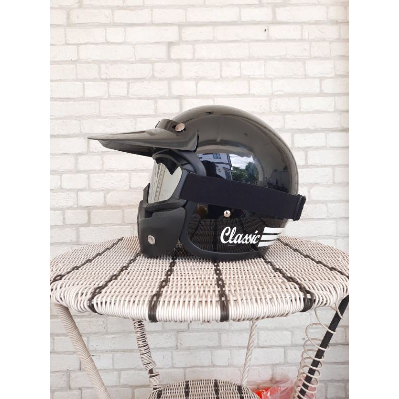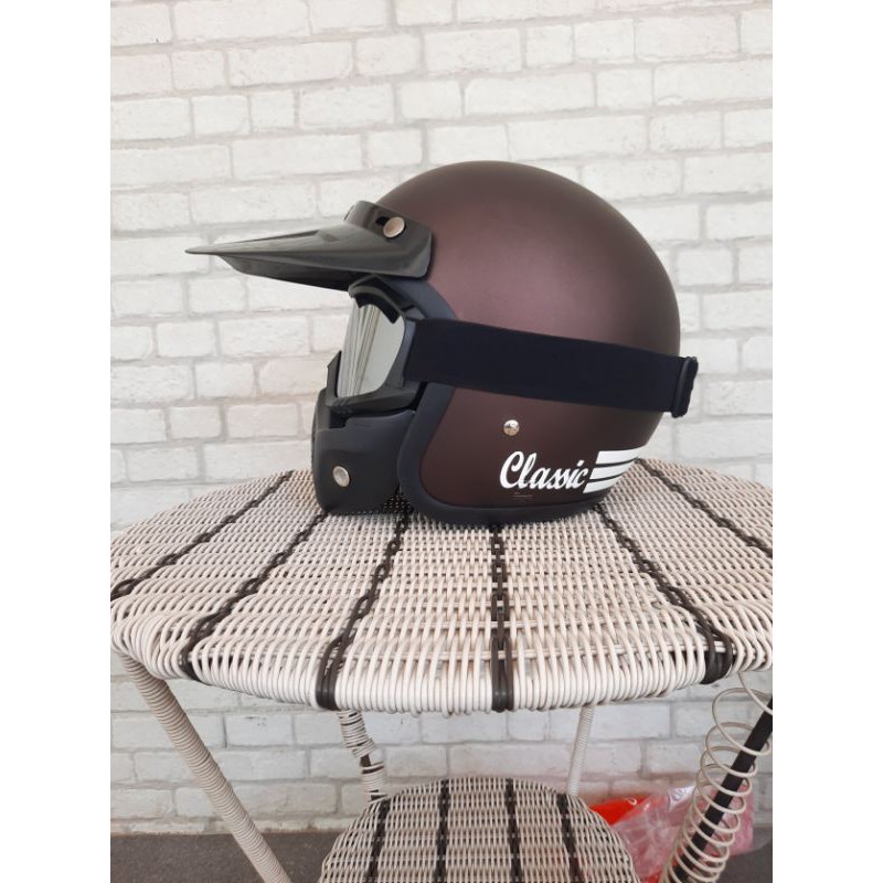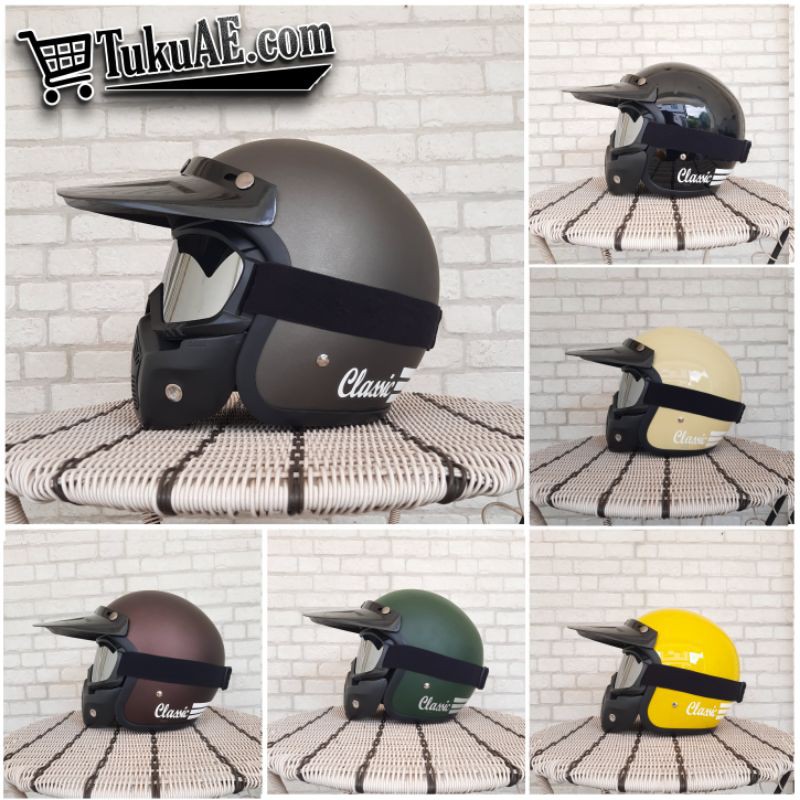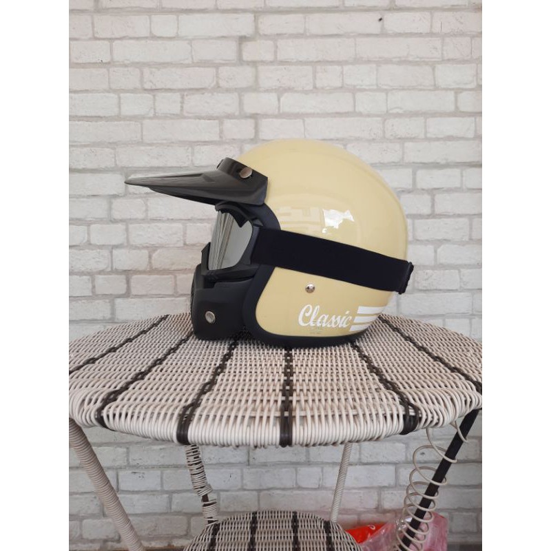 Kelebihan - Kelebihan membeli HELM BOGO RETRO POLOS CLASSIC STRIP GARIS PAKAI GOOGLEMASK di Toko ini