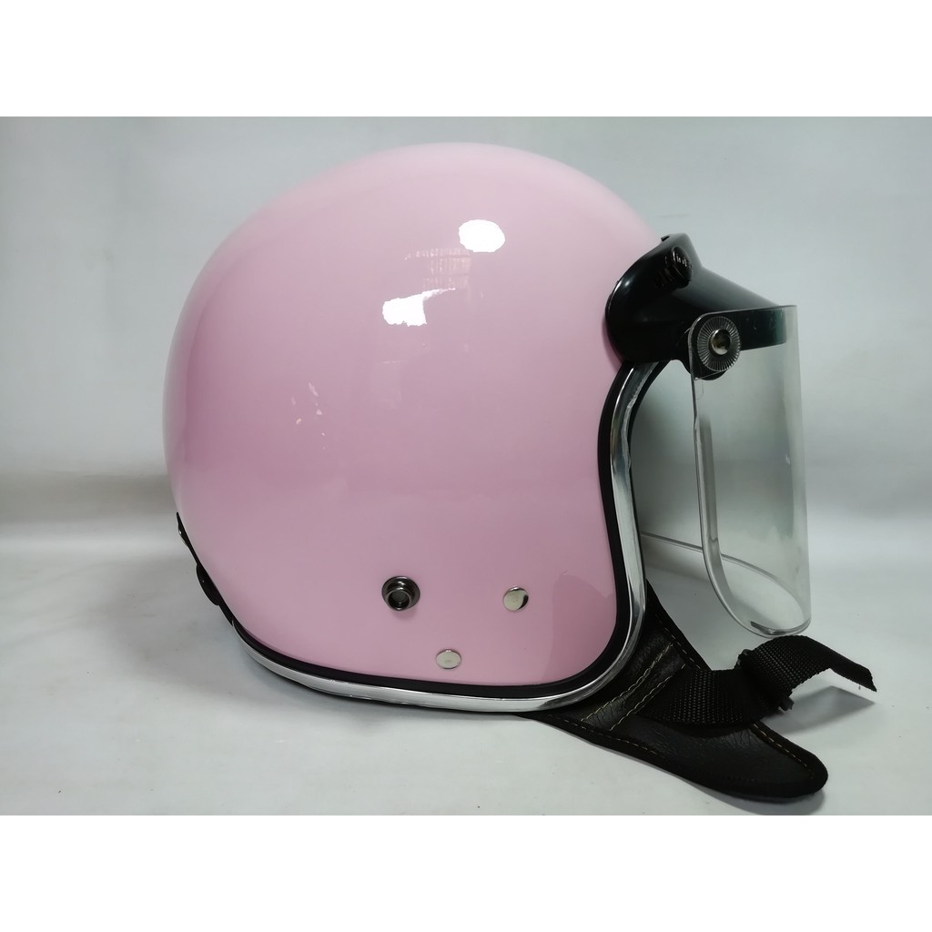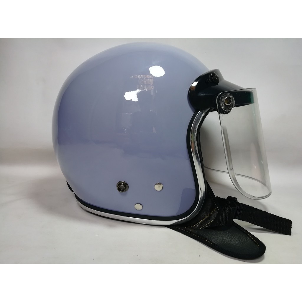 HELM BOGO RETRO WARNA PASTEL LIST CHROME DEWASA KACA DATAR BENING