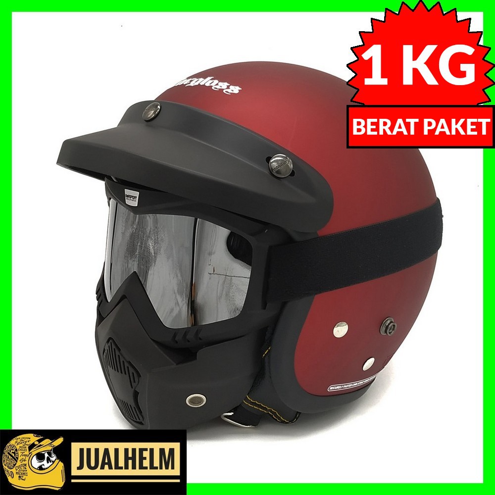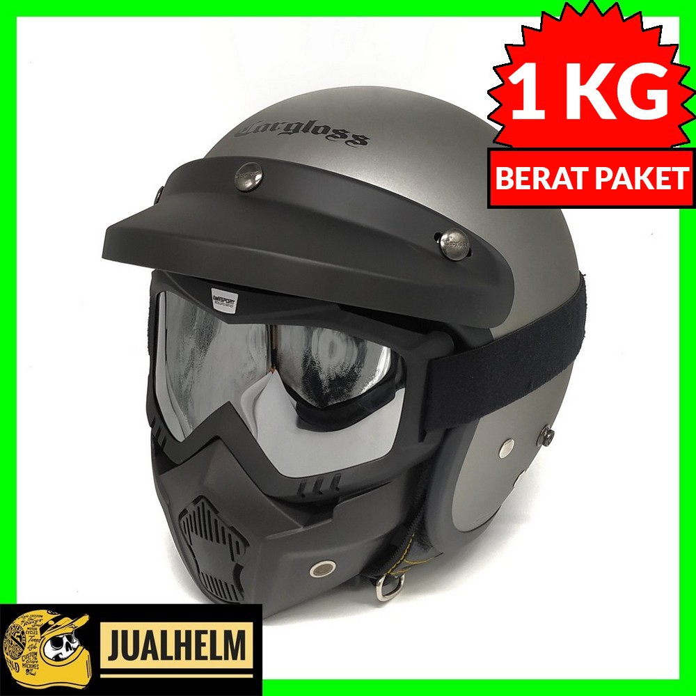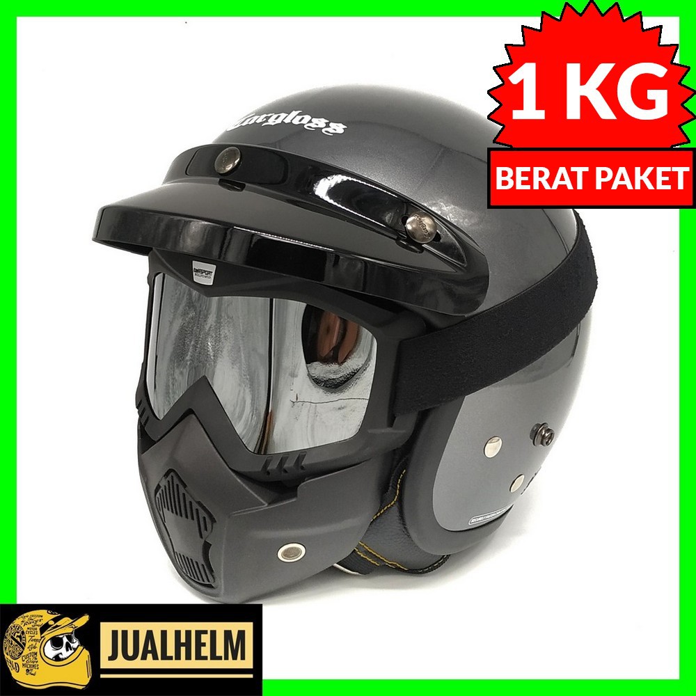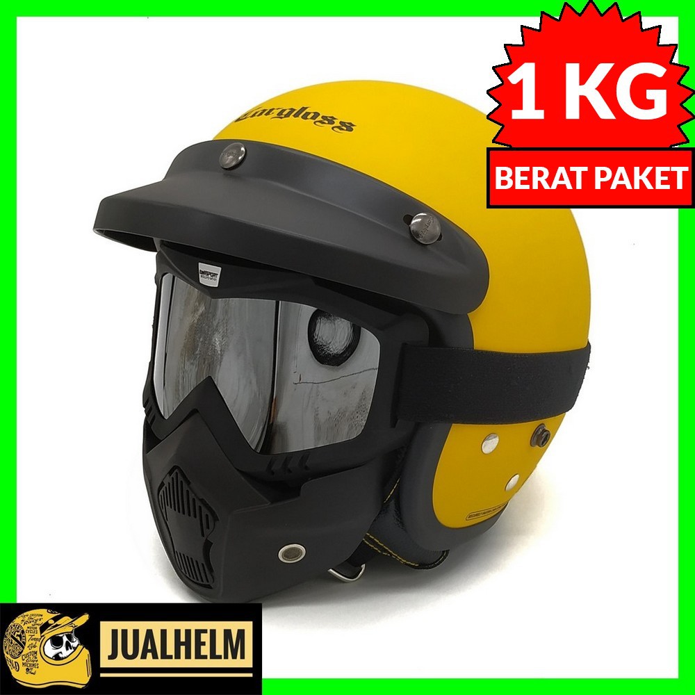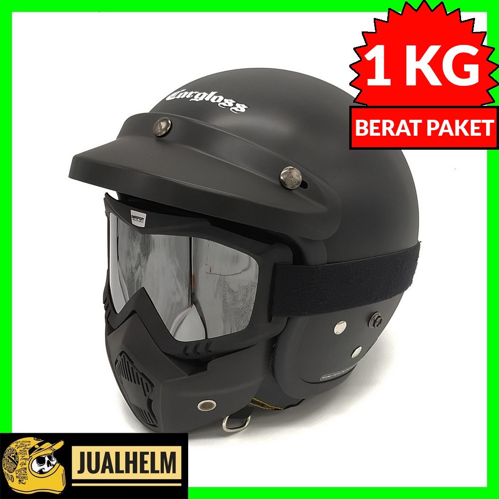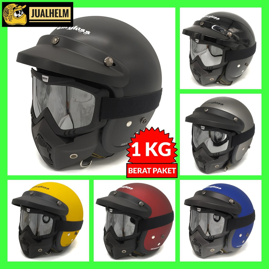 Helm Cargloss Retro + Google Mask (Helm Carglos/Cargloss Helm/Helm Vespa/Helm Bogo Retro)
