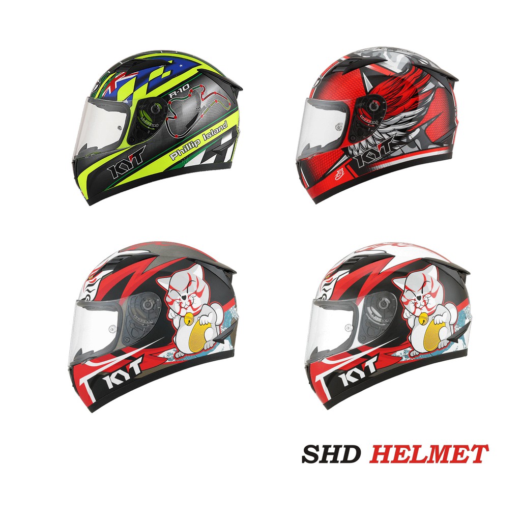 Helm Full Face KYT R10 Motif / Polos Visor Dark Smoke Original Murah